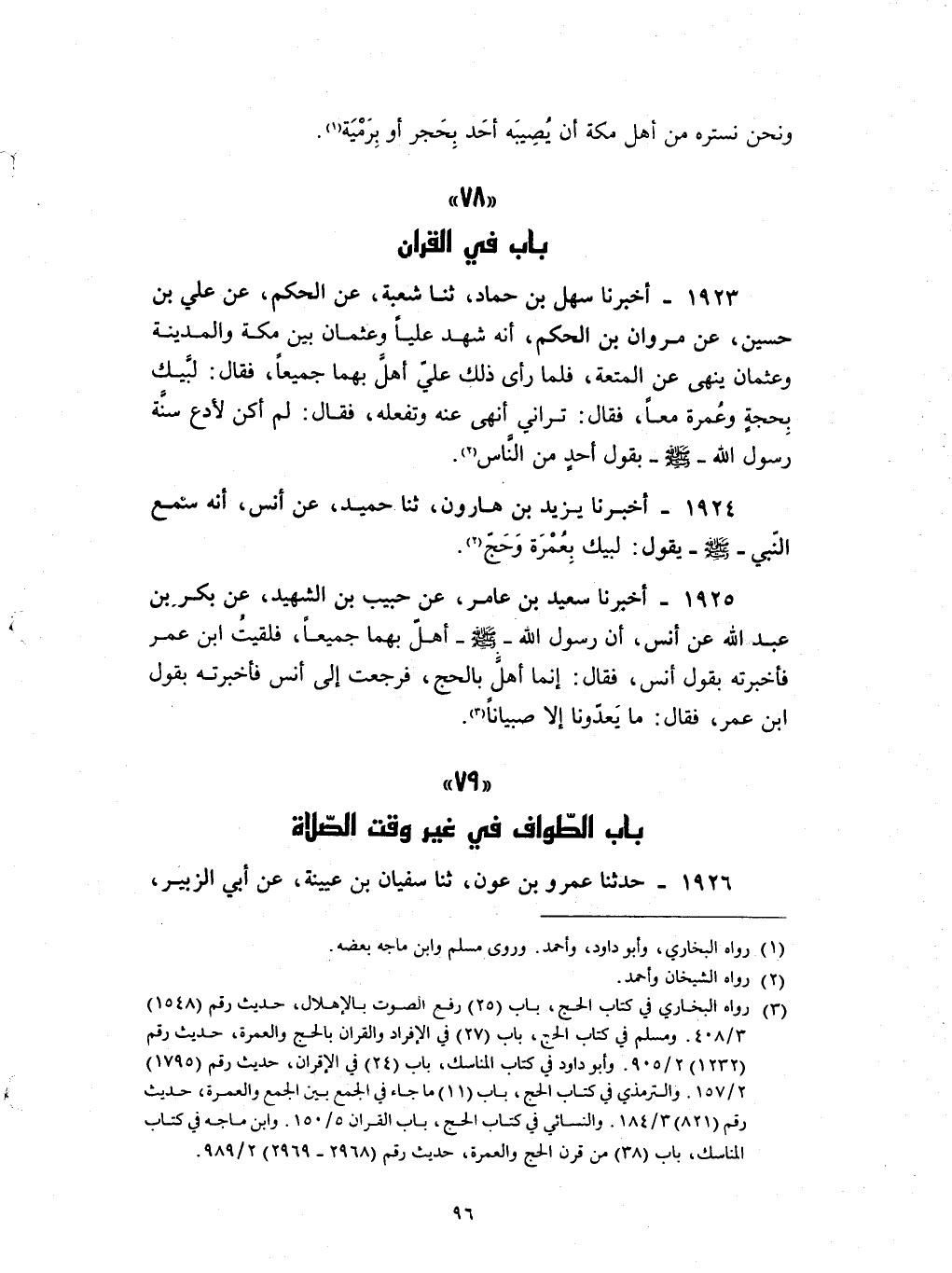 1925 - أخبرنا سعيد بن عامر عن حبيب بن الشهيد عن بكر بن عبد الله عن أنس : ان رسول الله صلى الله عليه و سلم أهل بهما جميعا فلقيت بن عمر فأخبرته بقول أنس فقال إنما أهل بالحج فرجعت إلى أنس فأخبرته بقول بن عمر فقال ما يعدونا الا صبيانا