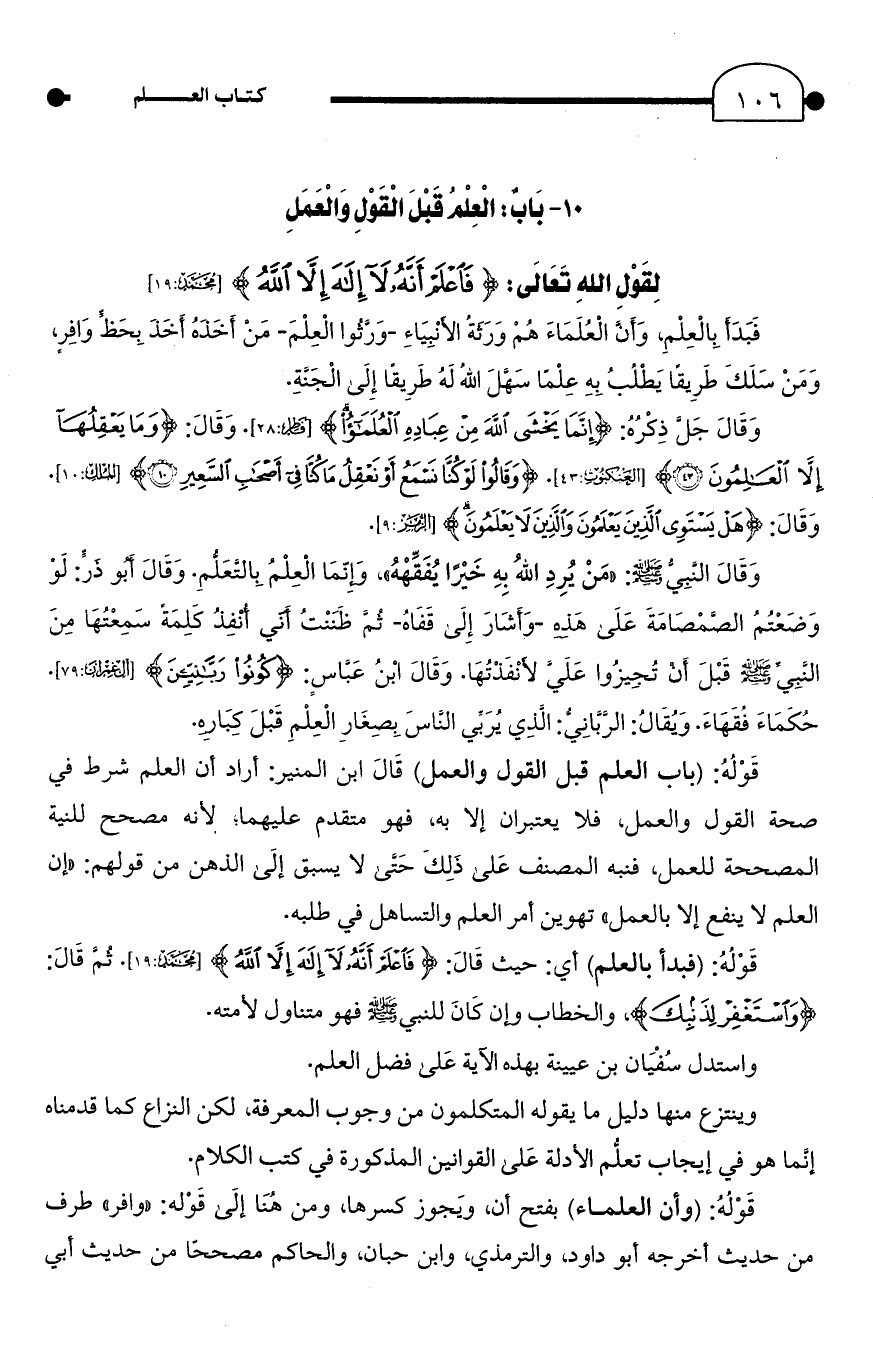 10 - بَابُ: الْعِلْمُ قَبْلَ الْقَوْلِ وَالْعَمَلِ