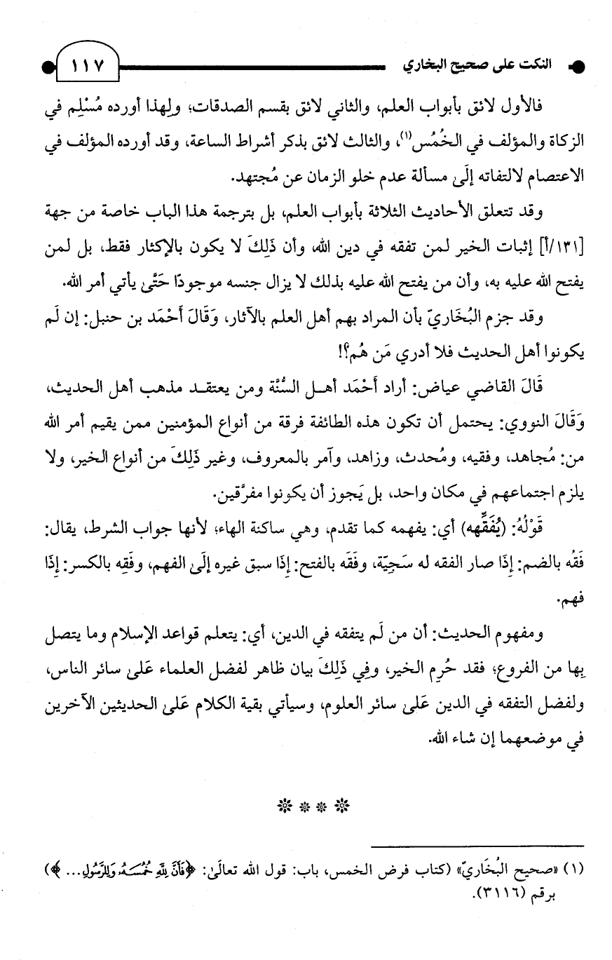 وقد جزم البُخَاريّ بأن المراد بهم أهل العلم بالآثار، وَقَالَ أَحْمَد بن حنبل: إن لَم يكونوا أهل الحديث فلا أدري مَن هُم؟ !