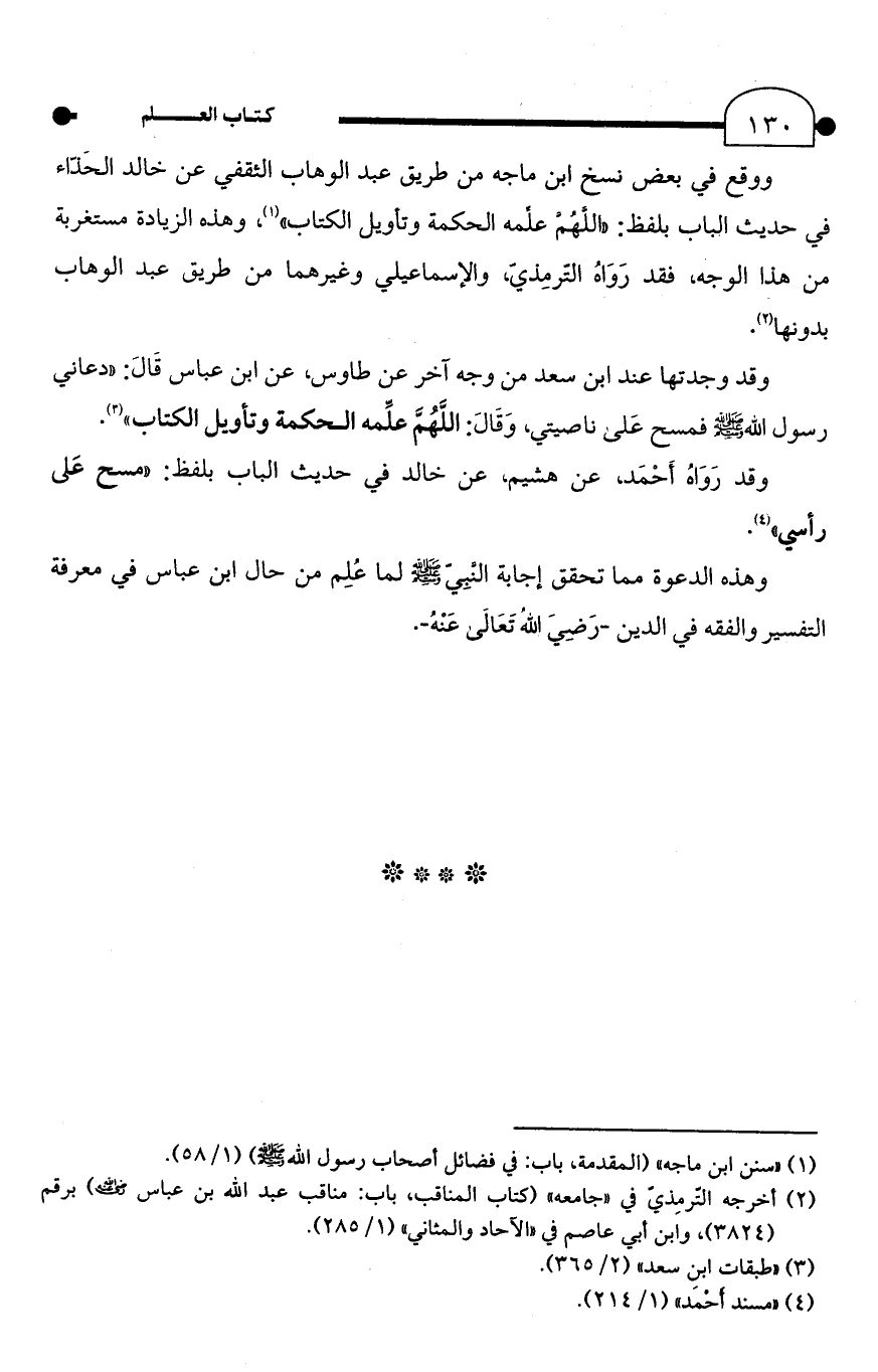 (¬2) أخرجه التّرمِذيّ في "جامعه" (كتاب المناقب، باب: مناقب عبد الله بن عباس - رضي الله عنه -) برقم (3824)، وابن أبي عاصم في "الآحاد والمثاني" (1/ 285).