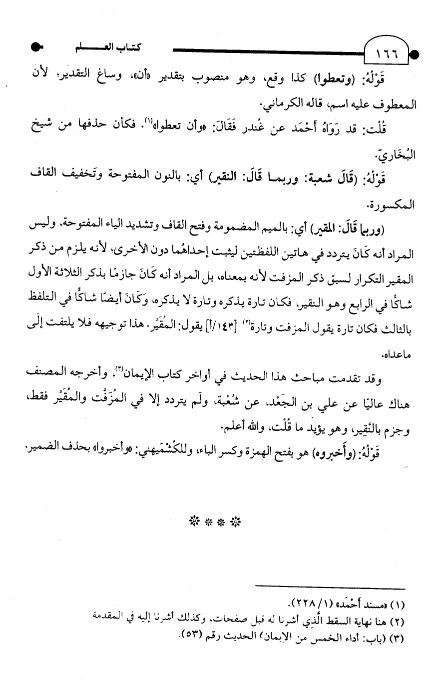 قُلْت: قد رَوَاة أَحْمَد عن غُندر فَقَالَ: "وأن تعطوا" (¬1). فكأن حذفها من شيخ البُخَاريّ.