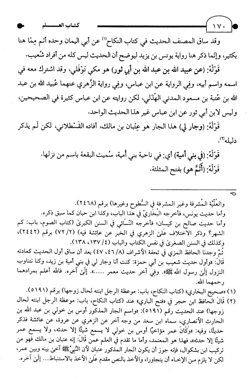 (¬2) قَالَ الحافظ ابن حجر في "فتح الباري" عند (كتاب النكاح، باب: موعظة الرجل ابنته لحال زوجها) عند الحديث رقم (5191): "واسم الجار المذكور أوس بن خولي بن عبد الله بن الحارث الأنصارِي، سماه ابن سعد من وجه آخر عن الزهري عن عروة، عن عائشة فذكر حديثًا، وفيه: "وكَانَ عمر مؤاخيًا أوس بن خولي لا يسمع شيئًا إلا حدثه، ولا يسمع عمر شيئًا إلا حدثه"، فهذا هو المعتمد، وأما ما تقدم في العلم عمن قَالَ: إنه عتبان بن مالك فهو من تركيب ابن بشكوال، فإنه جوز أن يكون الجار المذكور عتبان لأن النَّبِيّ - صلى الله عليه وسلم - آخى بينه وبين عمر، لكن لا يلزم من الإخاء أن يتجاورا، والأخذ بالنص مقدم عَلى الأخذ بالاستنباط. . . إلَى آخره.