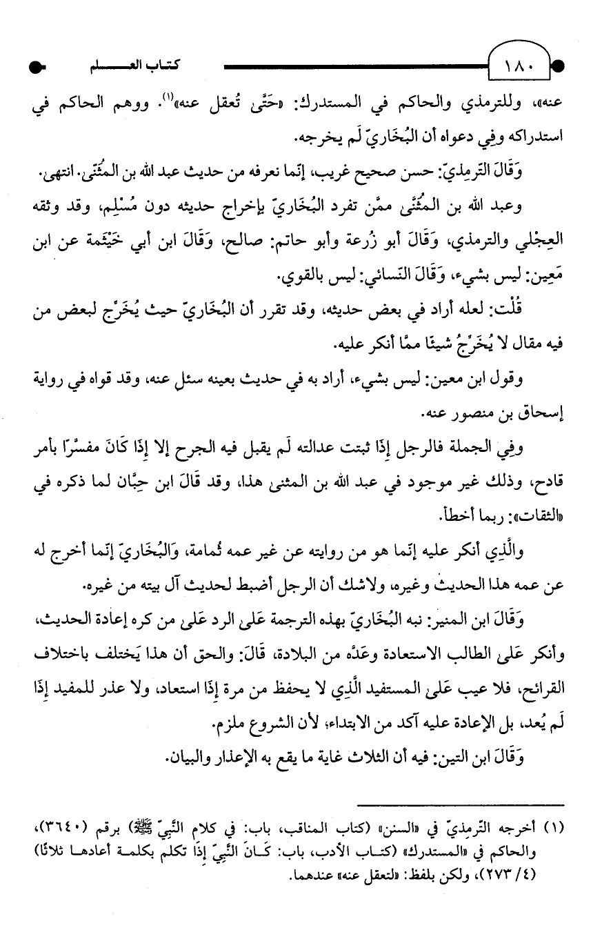 وَقَالَ الترمِذيّ: حسن صحيح غريب، إنَّما نعرفه من حديث عبد الله بن المُثَنَّى. انتهى.