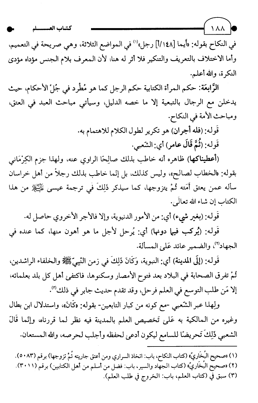 (¬1) "صحيح البُخَارِيّ" (كتاب النِّكَاح، باب: اتخاذ السراري ومن أعتق جاريته ثُمَّ تزوجها) برقم (5083).