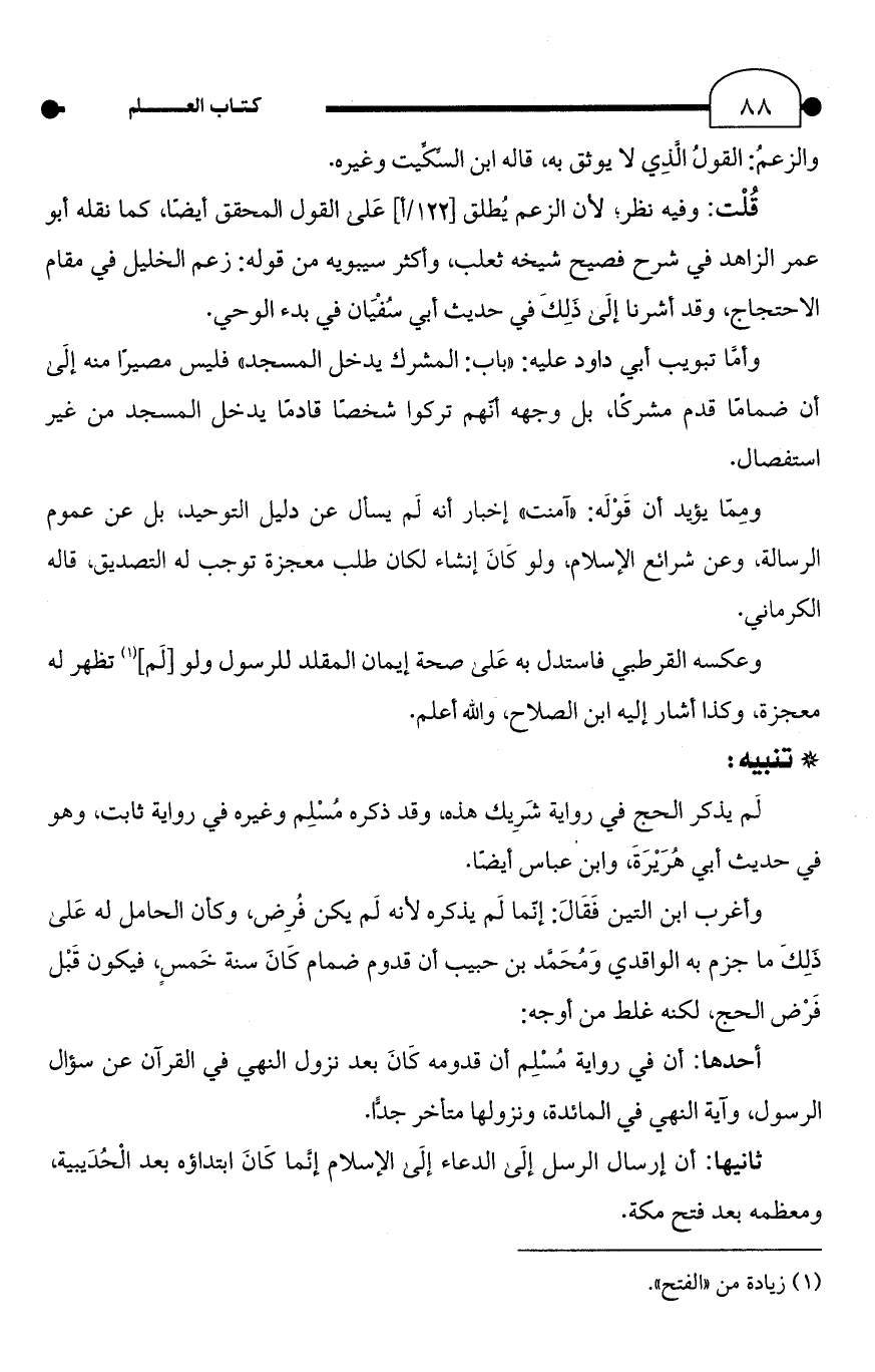 قُلْت: وفيه نظر؛ لأن الزعم يُطلق [122/ أ] عَلى القول المحقق أيضًا، كما نقله أبو عمر الزاهد في شرح فصيح شيخه ثعلب، وأكثر سيبويه من قوله: زعم الخليل في مقام الاحتجاج، وقد أشرنا إلى ذَلِكَ في حديث أبي سُفْيَان في بدء الوحي.