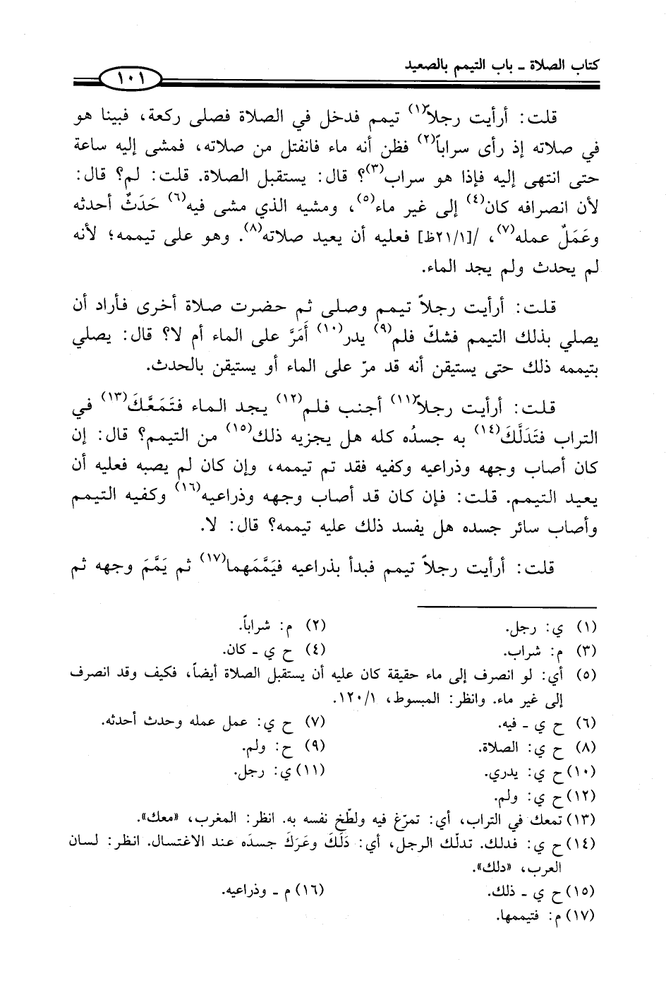(¬5) أي: لو انصرف إلى ماء حقيقة كان عليه أن يستقبل الصلاة أيضاً، فكيف وقد انصرف إلى غير ماء. وانظر: المبسوط، 1/ 120.