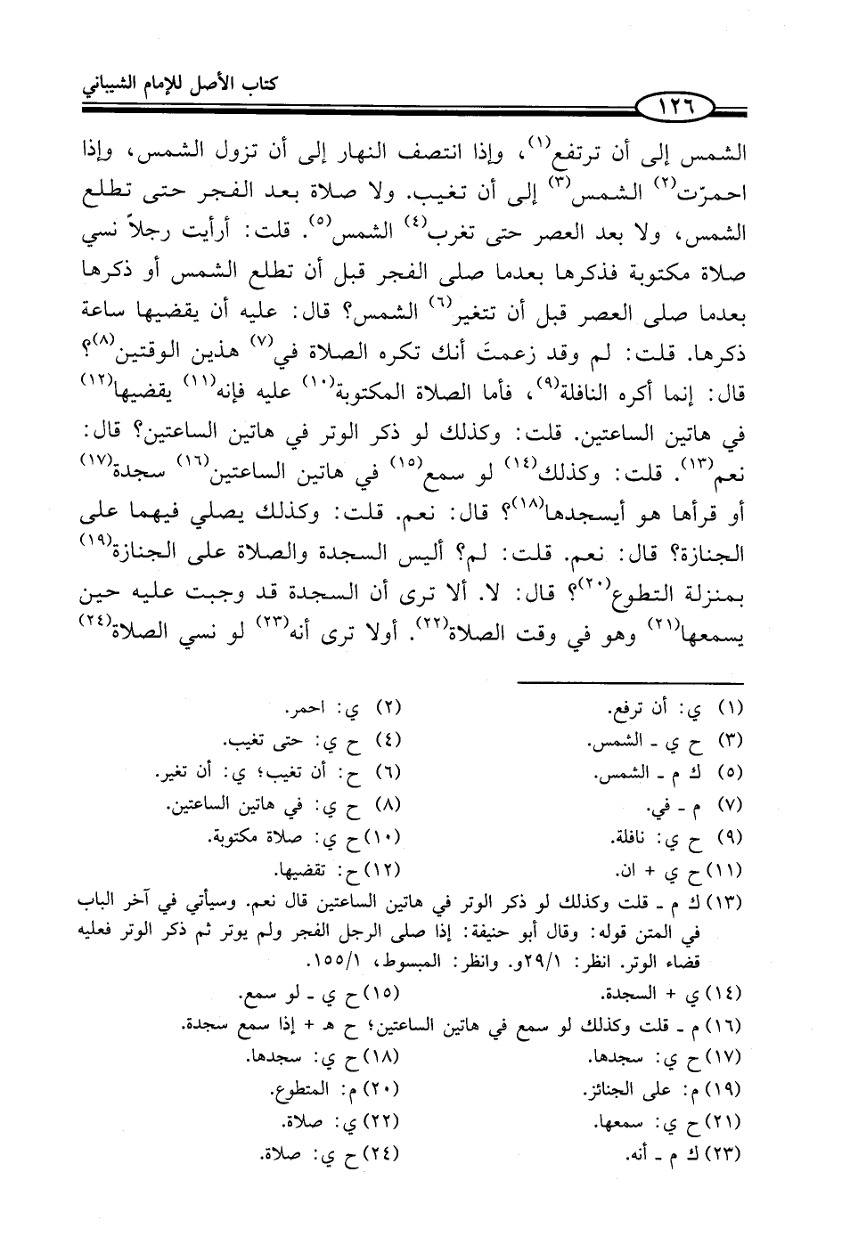 (¬13) ك م - قلت وكذلك لو ذكر الوتر في هاتين الساعتين قال نعم. وسيأتي في آخر الباب في المتن قوله: وقال أبو حنيفة: إذا صلى الرجل الفجر ولم يوتر ثم ذكر الوتر فعليه قضد الوتر. انظر: 1/ 29 و. وانظر: المبسوط، 1/ 155.