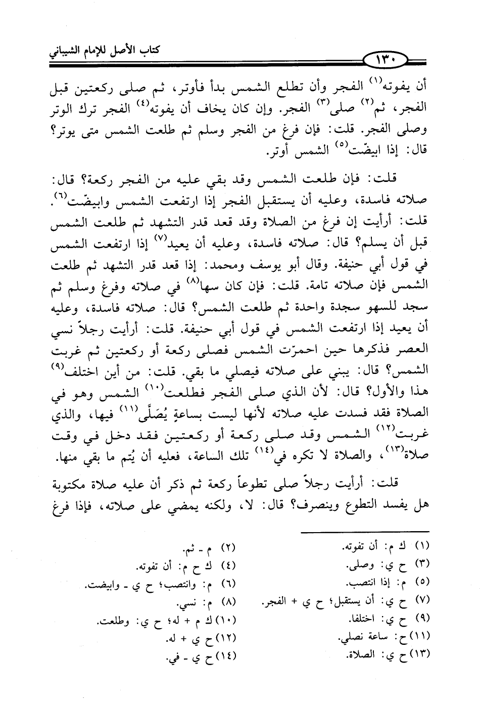 قلت: فإن طلعت الشمس وقد بقي عليه من الفجر ركعة؟ قال: صلاته فاسدة، وعليه أن يستقبل الفجر إذا ارتفعت الشمس وابيضّت (¬6). قلت: أرأيت إن فرغ من الصلاة وقد قعد قدر التشهد ثم طلعت الشمس قبل أن يسلم؟ قال: صلاته فاسدة، وعليه أن يعيد (¬7) إذا ارتفعت الشمس في قول أبي حنيفة. وقال أبو يوسف ومحمد: إذا قعد قدر التشهد ثم طلعت الشمس فإن صلاته تامة. قلت: فإن كان سها (¬8) في صلاته وفرغ وسلم ثم سجد للسهو سجدة واحدة ثم طلعت الشمس؟ قال: صلاته فاسدة، وعليه أن يعيد إذا ارتفعت الشمس في قول أبي حنيفة. قلت: أرأيت رجلاً نسي العصر فذكرها حين احمرّت الشمس فصلى ركعة أو ركعتين ثم غربت الشمس؟ قال: يبني على صلاته فيصلي ما بقي. قلت: من أين اختلف (¬9) هذا والأول؟ قال: لأن الذي صلى الفجر فطلعت (¬10) الشمس وهو في الصلاة فقد فسدت عليه صلاته لأنها ليست بساعةٍ يُصَلَّى (¬11) فيها، والذي غربت (¬12) الشمس وقد صلى ركعة أو ركعتين فقد دخل في وقت صلاة (¬13)، والصلاة لا تكره في (¬14) تلك الساعة، فعليه أن يُتم ما بقي منها.