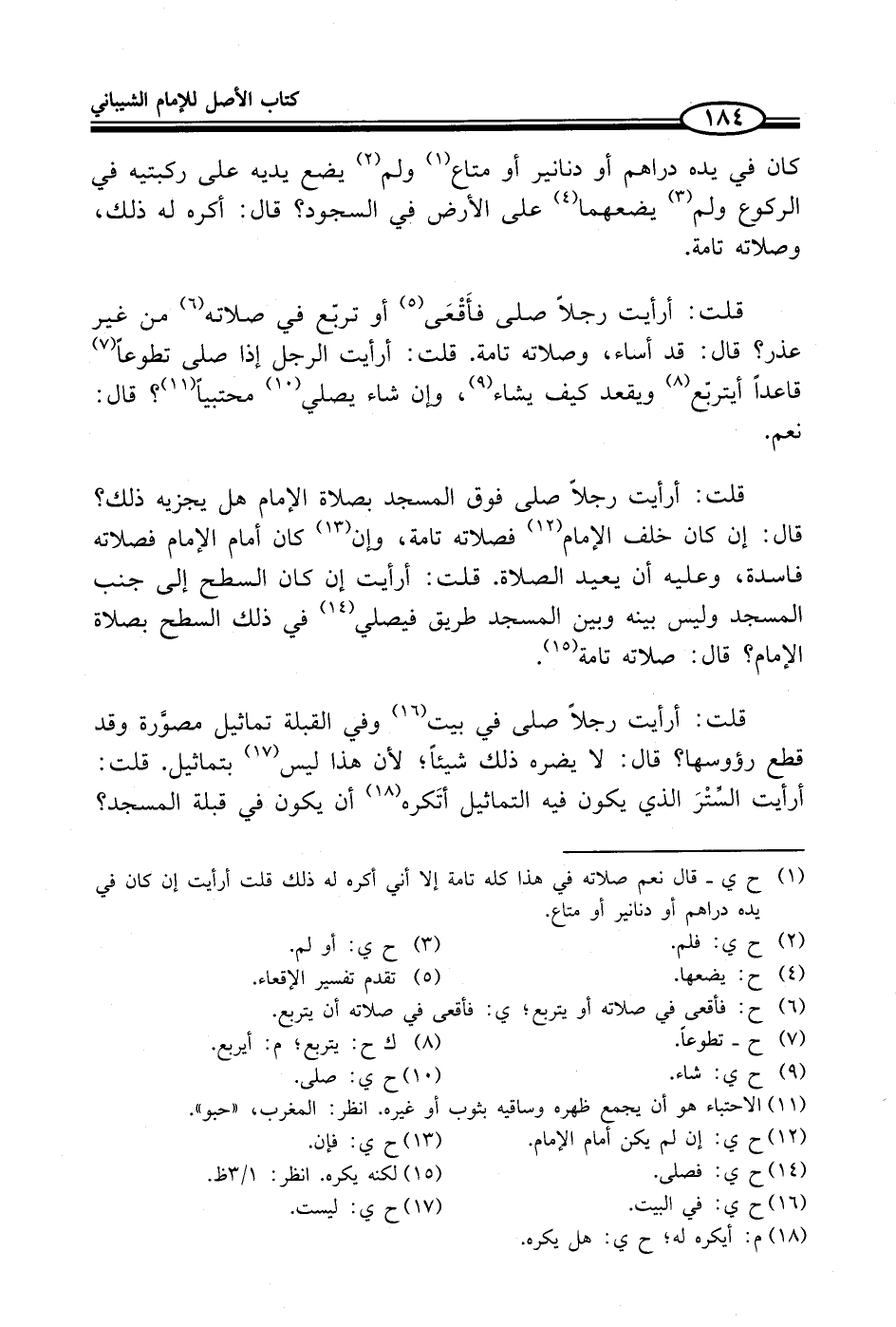 قلت: أرأيت رجلاً صلى فأَقْعَى (¬5) أو تربّع في صلاته (¬6) من غير عذر؟ قال: قد أساء، وصلاته تامة. قلت: أرأيت الرجل إذا صلى تطوعاً (¬7) قاعداً أيتربّع (¬8) ويقعد كيف يشاء (¬9)، وإن شاء يصلي (¬10) محتبياً (¬11)؟ قال: نعم.
