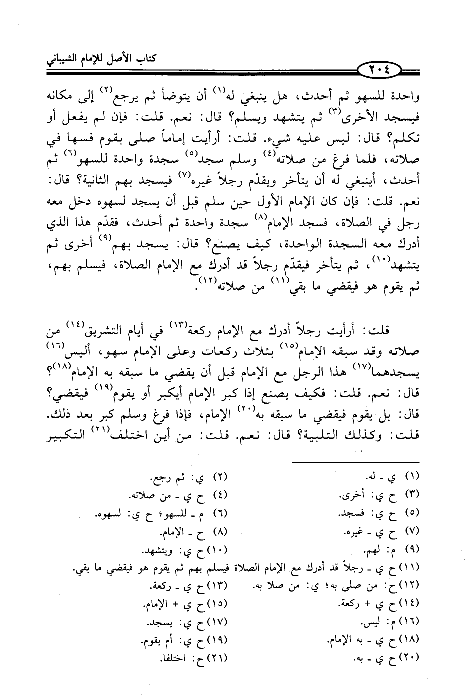 قلت: أرأيت رجلاً أدرك مع الإمام ركعة (¬13) في أيام التشريق (¬14) من صلاته وقد سبقه الإمام (¬15) بثلاث ركعات وعلى الإمام سهو، أليس (¬16) يسجدهما (¬17) هذا الرجل مع الإمام قبل أن يقضي ما سبقه به الإمام (¬18)؟ قال: نعم. قلت: فكيف يصنع إذا كبر الإمام أيكبر أو يقوم (¬19) فيقضي؟ قال: بل يقوم فيقضي ما سبقه به (¬20) الإمام، فإذا فرغ وسلم كبر بعد ذلك. قلت: وكذلك التلبية؟ قال: نعم. قلت: من أين اختلف (¬21) التكبير