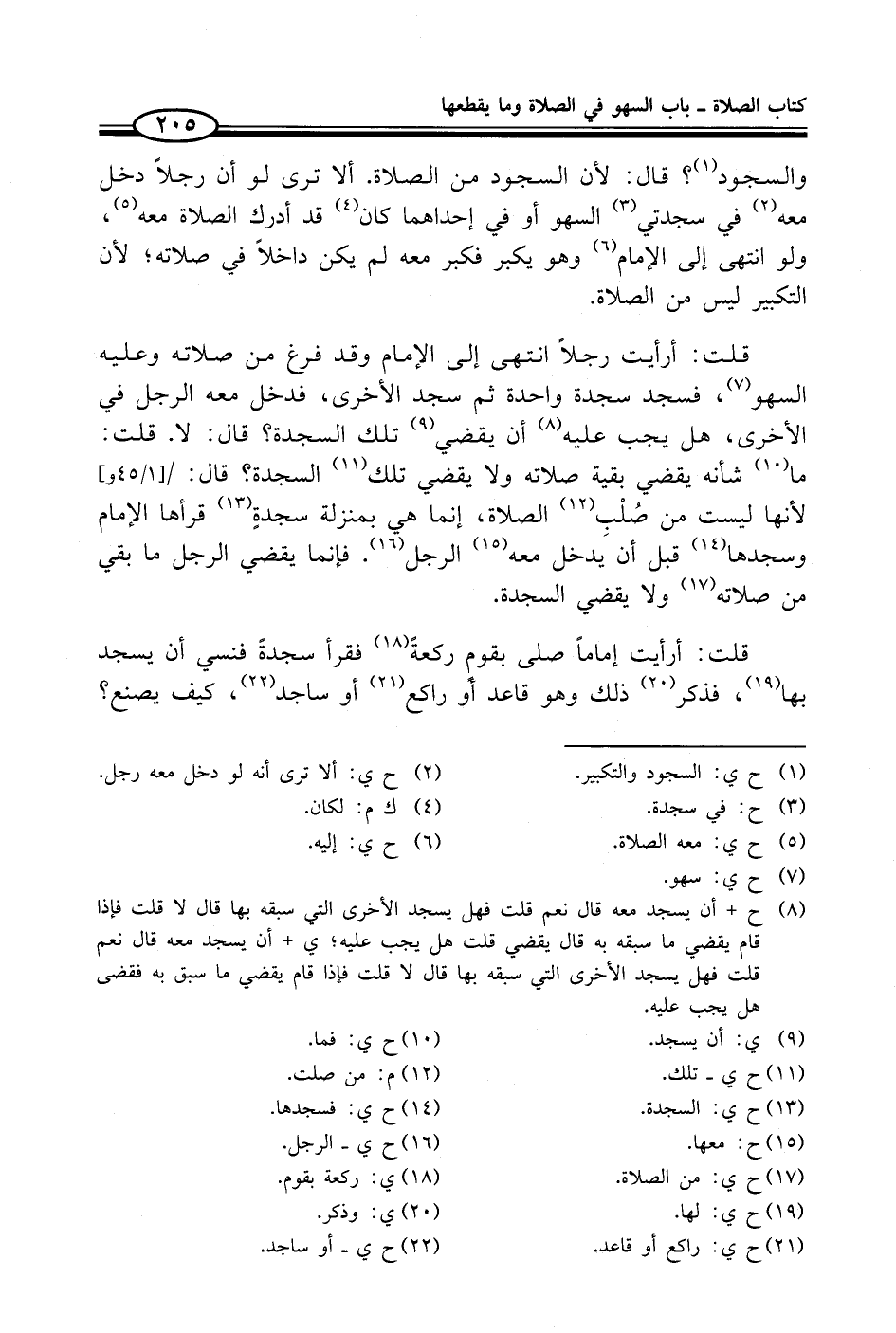 (¬8) ح + أن يسجد معه قال نعم قلت فهل يسجد الأخرى التي سبقه بها قال لا قلت فإذا قام يقضي ما سبقه به قال يقضي قلت هل يجب عليه؛ ي + أن يسجد معه قال نعم قلت فهل يسجد الأخرى التي سبقه بها قال لا قلت فإذا قام يقضي ما سبق به فقضى هل يجب عليه.