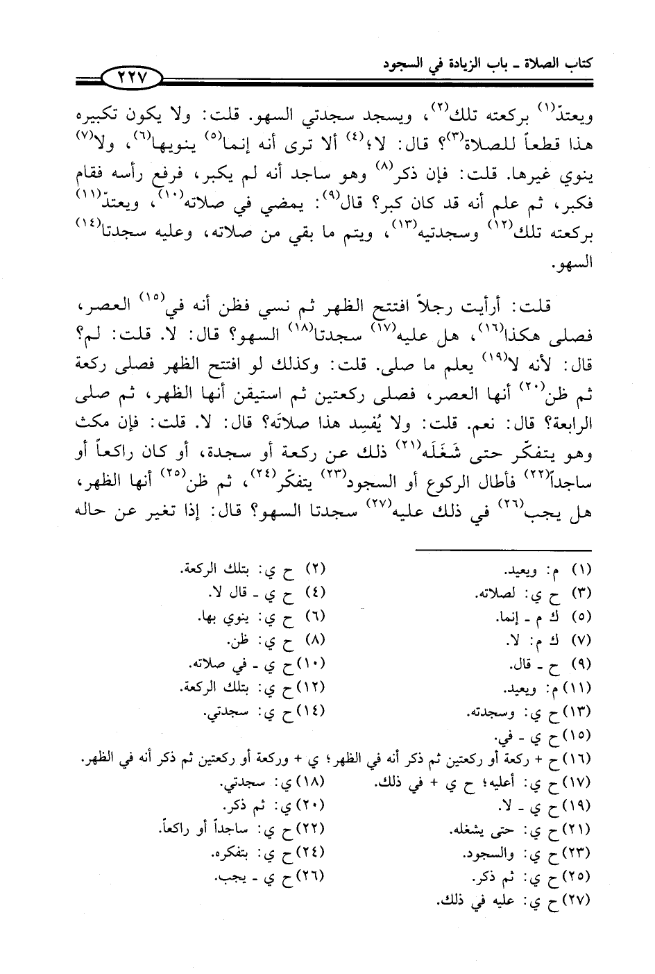 قلت: أرأيت رجلاً افتتح الظهر ثم نسي فظن أنه في (¬15) العصر، فصلى هكذا (¬16)، هل عليه (¬17) سجدتا (¬18) السهو؟ قال: لا. قلت: لم؟ قال: لأنه لا (¬19) يعلم ما صلى. قلت: وكذلك لو افتتح الظهر فصلى ركعة ثم ظن (¬20) أنها العصر، فصلى ركعتين ثم استيقن أنها الظهر، ثم صلى الرابعة؟ قال: نعم. قلت: ولا يُفسِد هذا صلاتَه؟ قال: لا. قلت: فإن مكث وهو يتفكّر حتى شَغَلَه (¬21) ذلك عن ركعة أو سجدة، أو كان راكعاً أو ساجداً (¬22) فأطال الركوع أو السجود (¬23) يتفكّر (¬24)، ثم ظن (¬25) أنها الظهر، هل يجب (¬26) في ذلك عليه (¬27) سجدتا السهو؟ قال: إذا تغير عن حاله