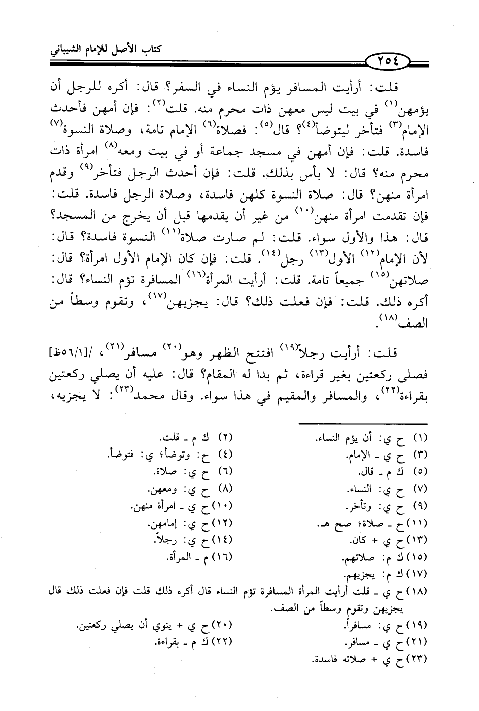(¬18) ح ي - قلت أرأيت المرأة المسافرة تؤم النساء قال أكره ذلك قلت فإن فعلت ذلك قال يجزيهن وتقوم وسطًا من الصف.