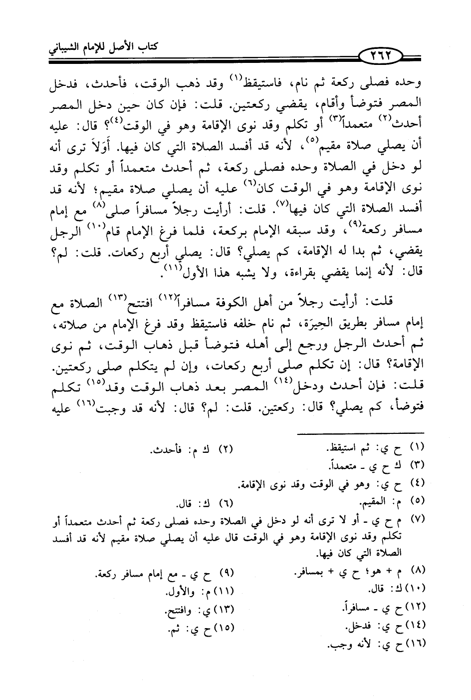 (¬7) م ح ي - أو لا ترى أنه لو دخل في الصلاة وحده فصلى ركعة ثم أحدث متعمداً أو تكلم وقد نوى الإقامة وهو في الوقت قال عليه أن يصلي صلاة مقيم لأنه قد أفسد الصلاة التي كان فيها.