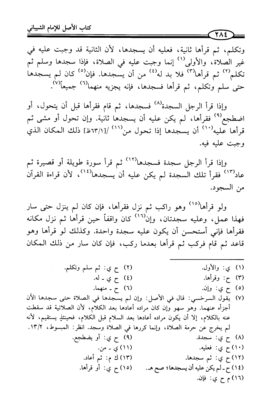 (¬7) يقول السرخسي: قال في الأصل: وإن لم يسجدها في الصلاة حتى سجدها الآن أجزأه عنهما. وهو سهو وإن كان مراده أعادها بعد الكلام، لأن الصلاتية قد سقطت عنه بالكلام، إلا أن يكون مراده أعادها بعد السلام قبل الكلام، فحينئذٍ يستقيم، لأنه لم يخرج عن حرمة الصلاة، وإنما كررها في الصلاة وسجد. انظر: المبسوط، 2/ 13.
