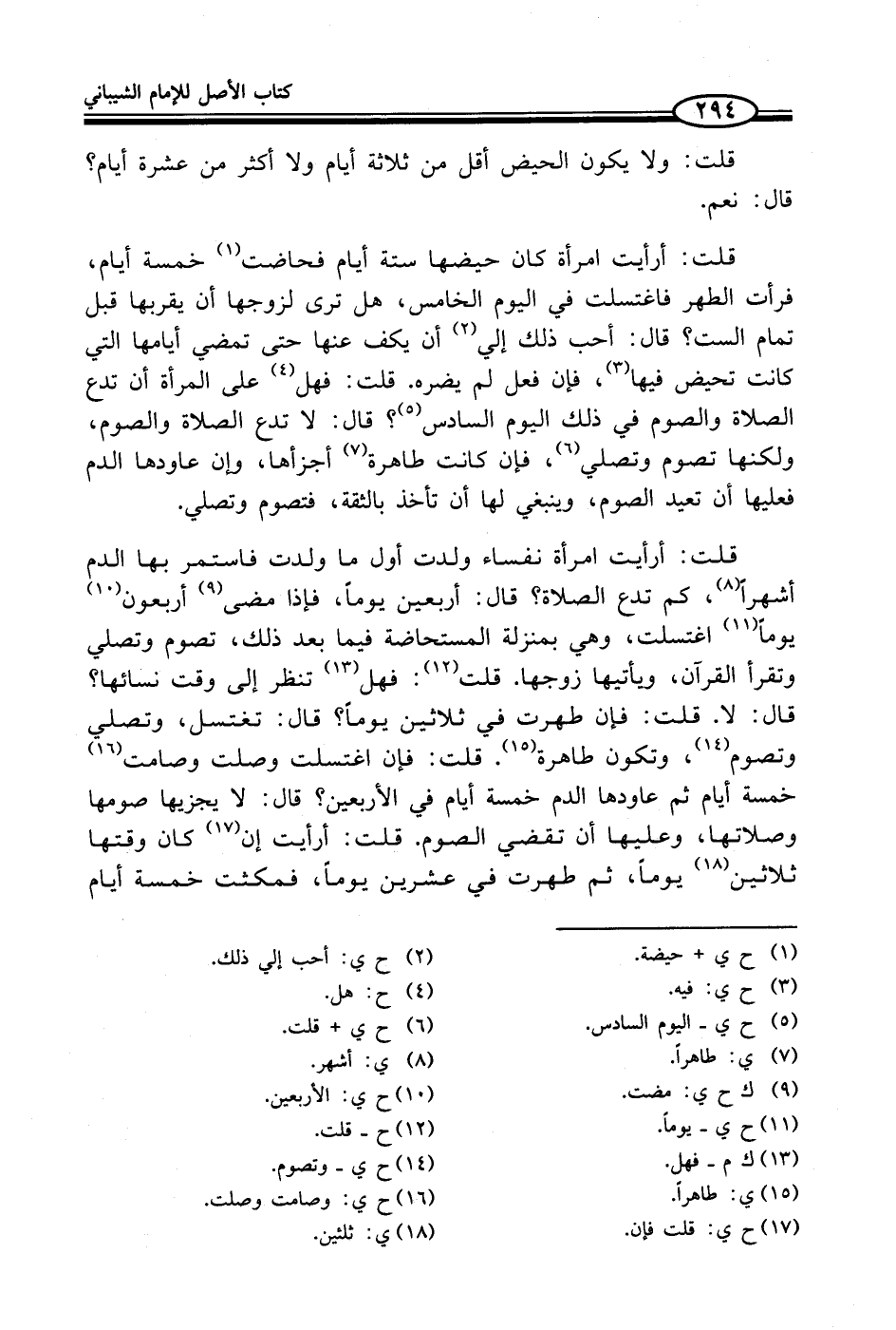 قلت: ولا يكون الحيض أقل من ثلاثة أيام ولا أكثر من عشرة أيام؟ قال: نعم.