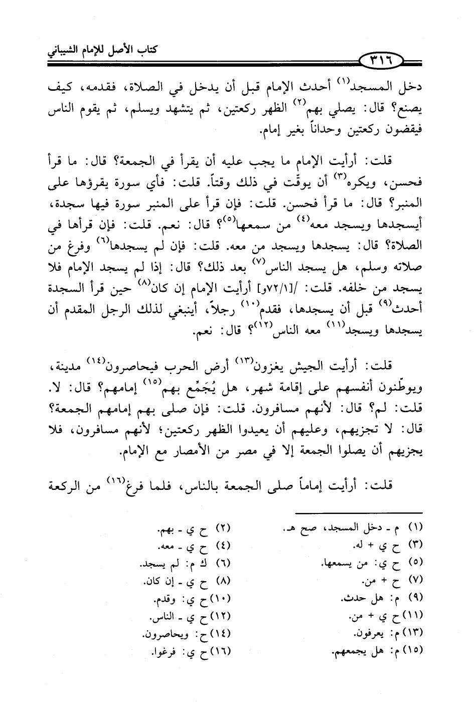 قلت: أرأيت الجيش يغزون (¬13) أرض الحرب فيحاصرون (¬14) مدينة، ويوطّنون أنفسهم على إقامة شهر، هل يُجَمِّع بهم (¬15) إمامهم؟ قال: لا. قلت: لم؟ قال: لأنهم مسافرون. قلت: فإن صلى بهم إمامهم الجمعة؟ قال: لا تجزيهم، وعليهم أن يعيدوا الظهر ركعتين؛ لأنهم مسافرون، فلا يجزيهم أن يصلوا الجمعة إلا في مصر من الأمصار مع الإمام.