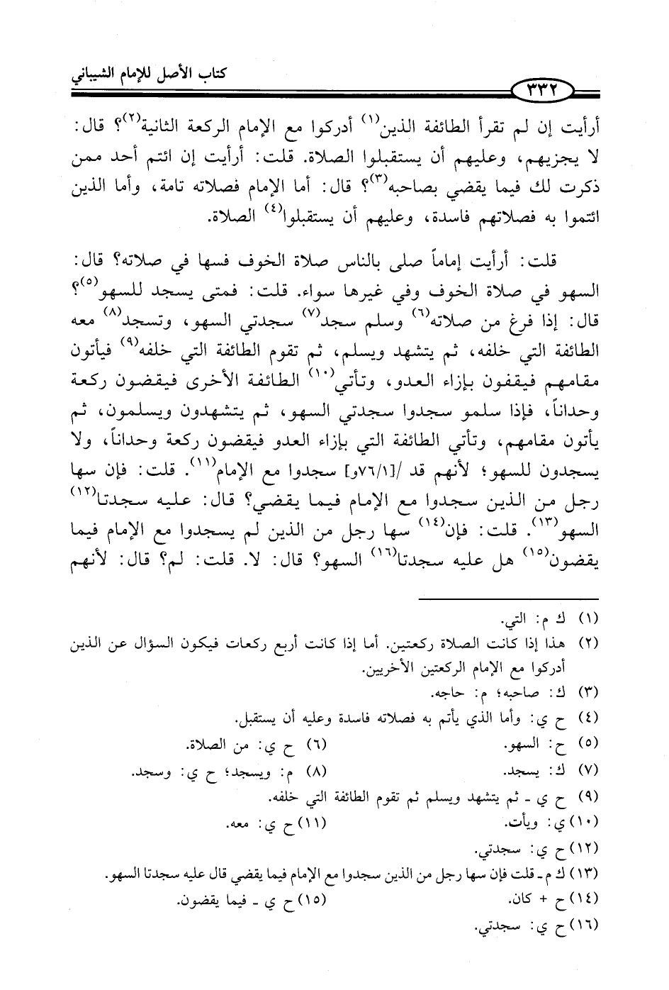 (¬9) ح ي - ثم يتشهد ويسلم ثم تقوم الطائفة التي خلفه.