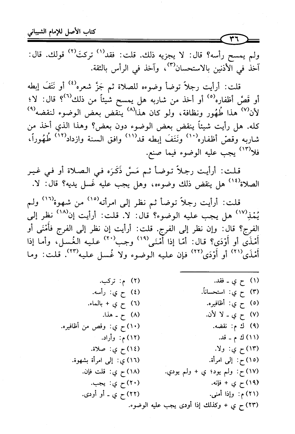 قلت: أرأيت رجلاً توضأ ثم نظر إلى امرأته (¬15) من شهوة (¬16) ولم يُمْذِ (¬17) هل يجب عليه الوضوء؟ قال: لا. قلت: أرأيت إن (¬18) نظر إلى الفرج؟ قال: وإن نظر إلى الفرج. قلت: أرأيت إن نظر إلى الفرج فأَمْنَى أو أَمْذَى أو أَوْدَى؟ قال: أمّا إذا أمْنَى (¬19) وجب (¬20) عليه الغُسل، وأما إذا أَمْذَى (¬21) أو أَوْدَى (¬22) فإن عليه الوضوء ولا غُسل عليه (¬23). قلت: وما