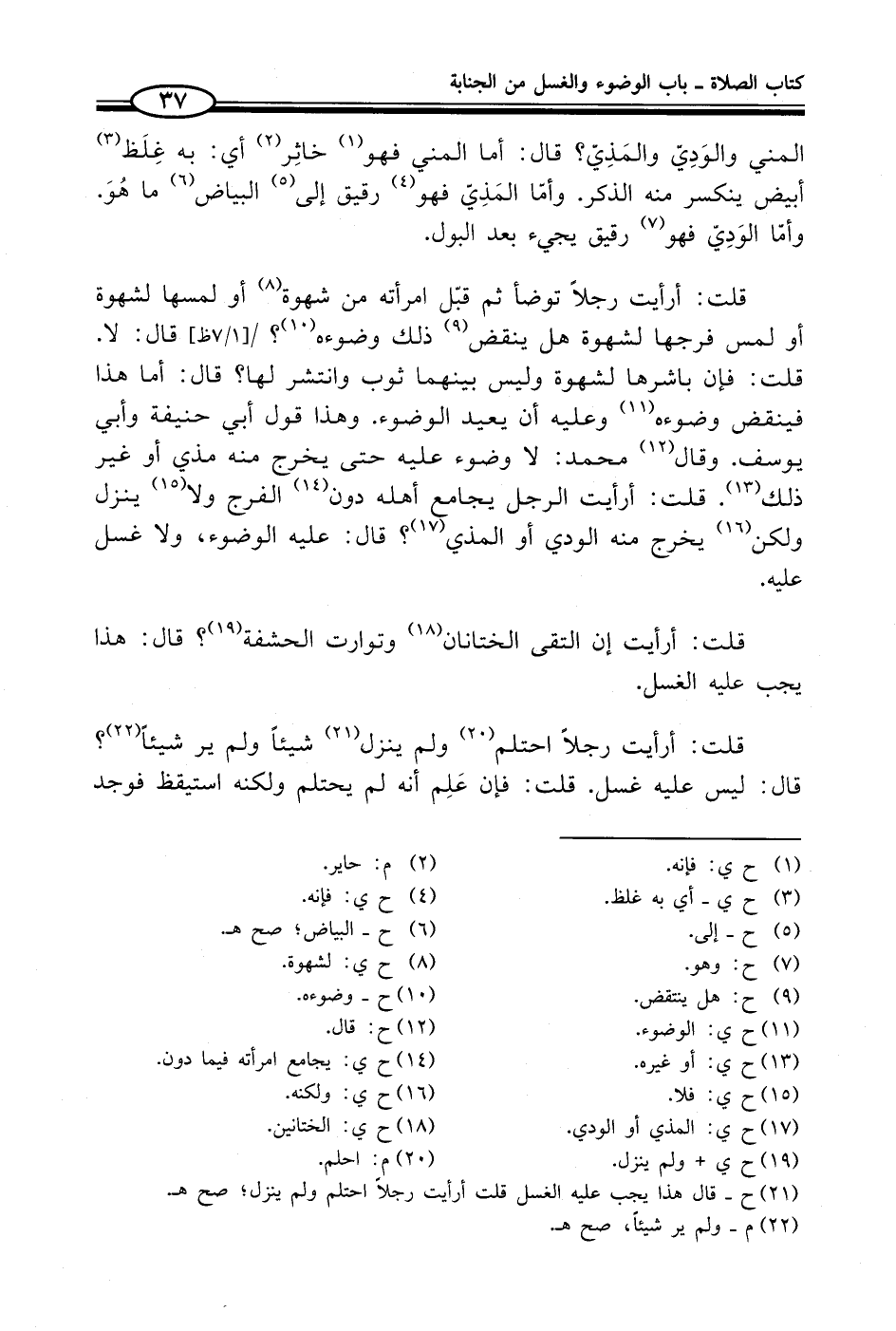 (¬21) ح - قال هذا يجب عليه الغسل قلت أرأيت رجلاً احتلم ولم ينزل؛ صح هـ.