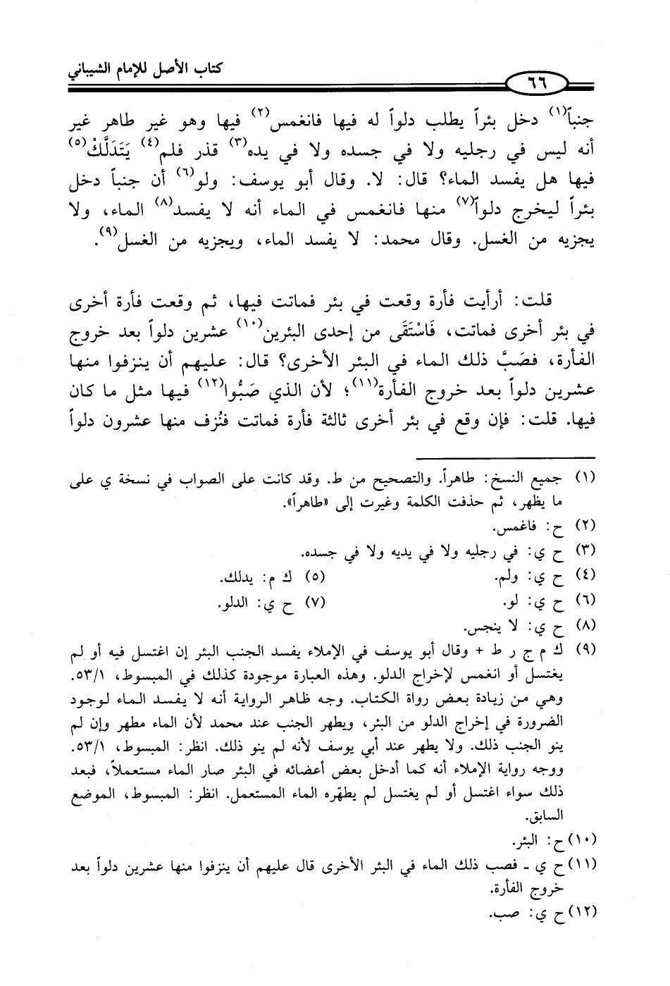 (¬11) ح ي - فصب ذلك الماء في البئر الأخرى قال عليهم أن ينزفوا منها عشرين دلواً بعد خروج الفأرة.