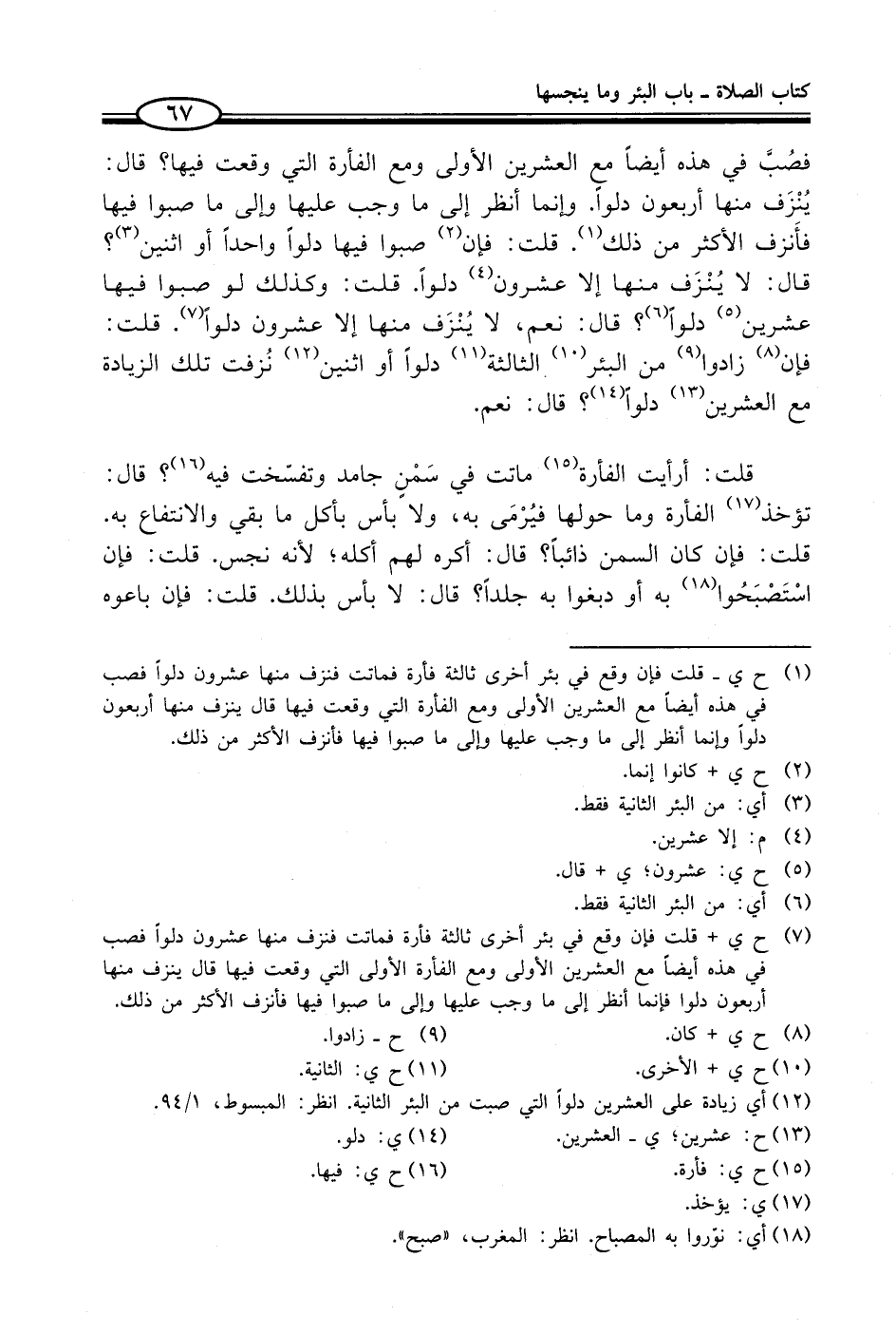 (¬12) أي زيادة على العشرين دلواً التي صبت من البئر الثانية. انظر: المبسوط، 1/ 94.