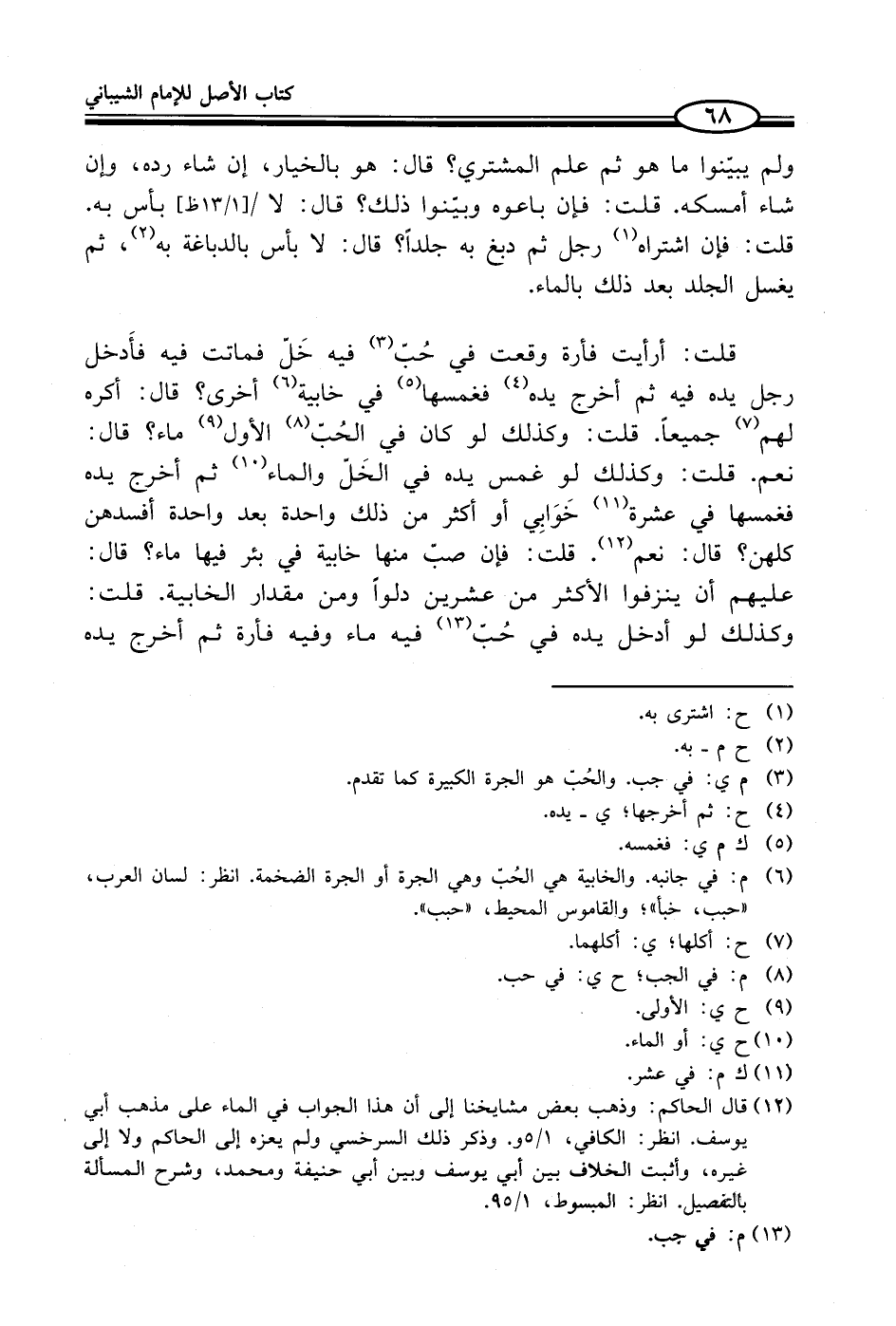 (¬12) قال الحاكم: وذهب بعض مشايخنا إلى أن هذا الجواب في الماء على مذهب أبي يوسف. انظر: الكافي، 1/ 5 و. وذكر ذلك السرخسي ولم يعزه إلى الحاكم ولا إلى غيره، وأثبت الخلاف بين أبي يوسف وبين أبي حنيفة ومحمد، وشرح المسألة بالتفصيل. انظر: المبسوط، 1/ 95.