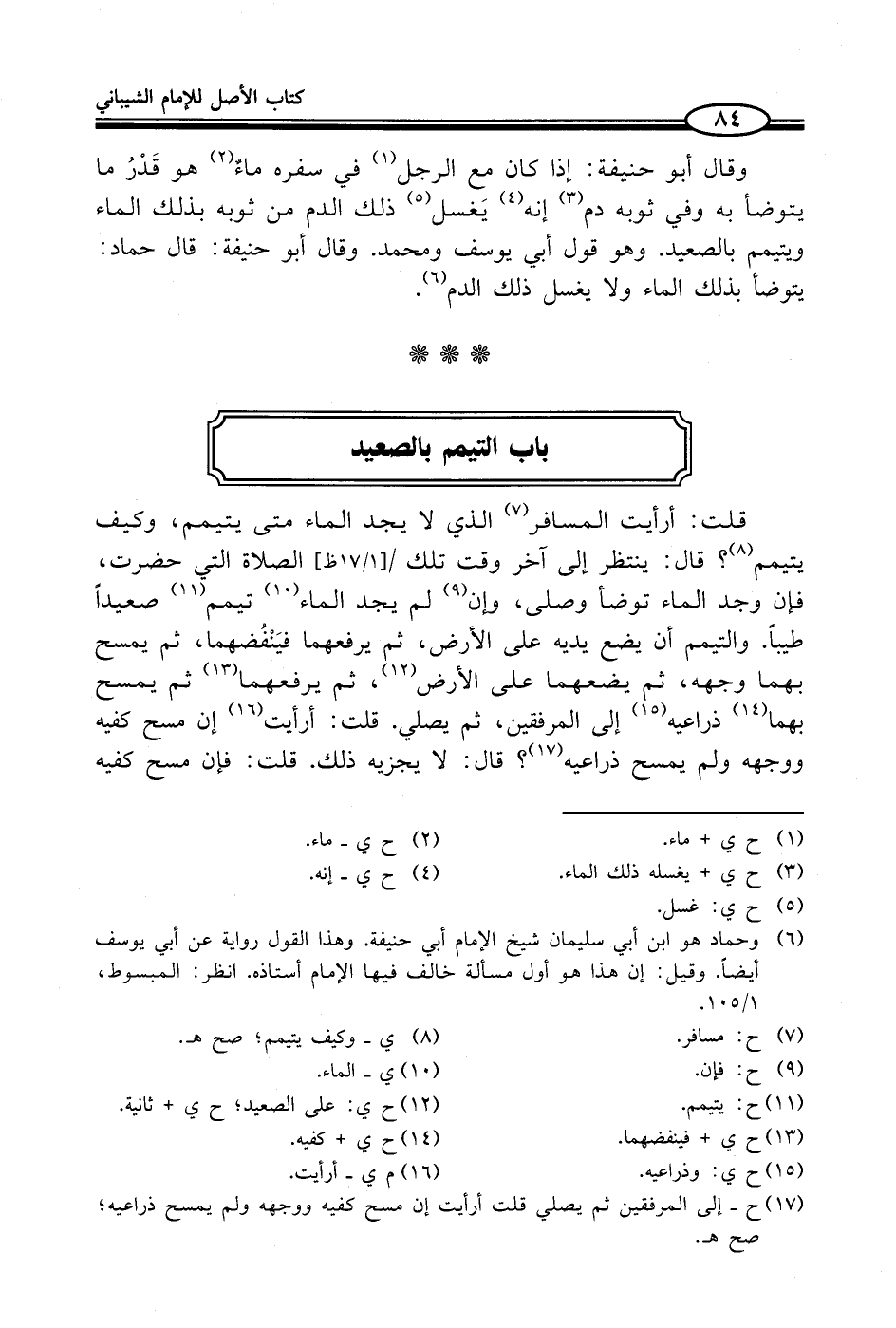 وقال أبو حنيفة: إذا كان مع الرجل (¬1) في سفره ماءٌ (¬2) هو قَدْرُ ما يتوضأ به وفي ثوبه دم (¬3) إنه (¬4) يَغسل (¬5) ذلك الدم من ثوبه بذلك الماء ويتيمم بالصعيد. وهو قول أبي يوسف ومحمد. وقال أبو حنيفة: قال حماد: يتوضأ بذلك الماء ولا يغسل ذلك الدم (¬6).