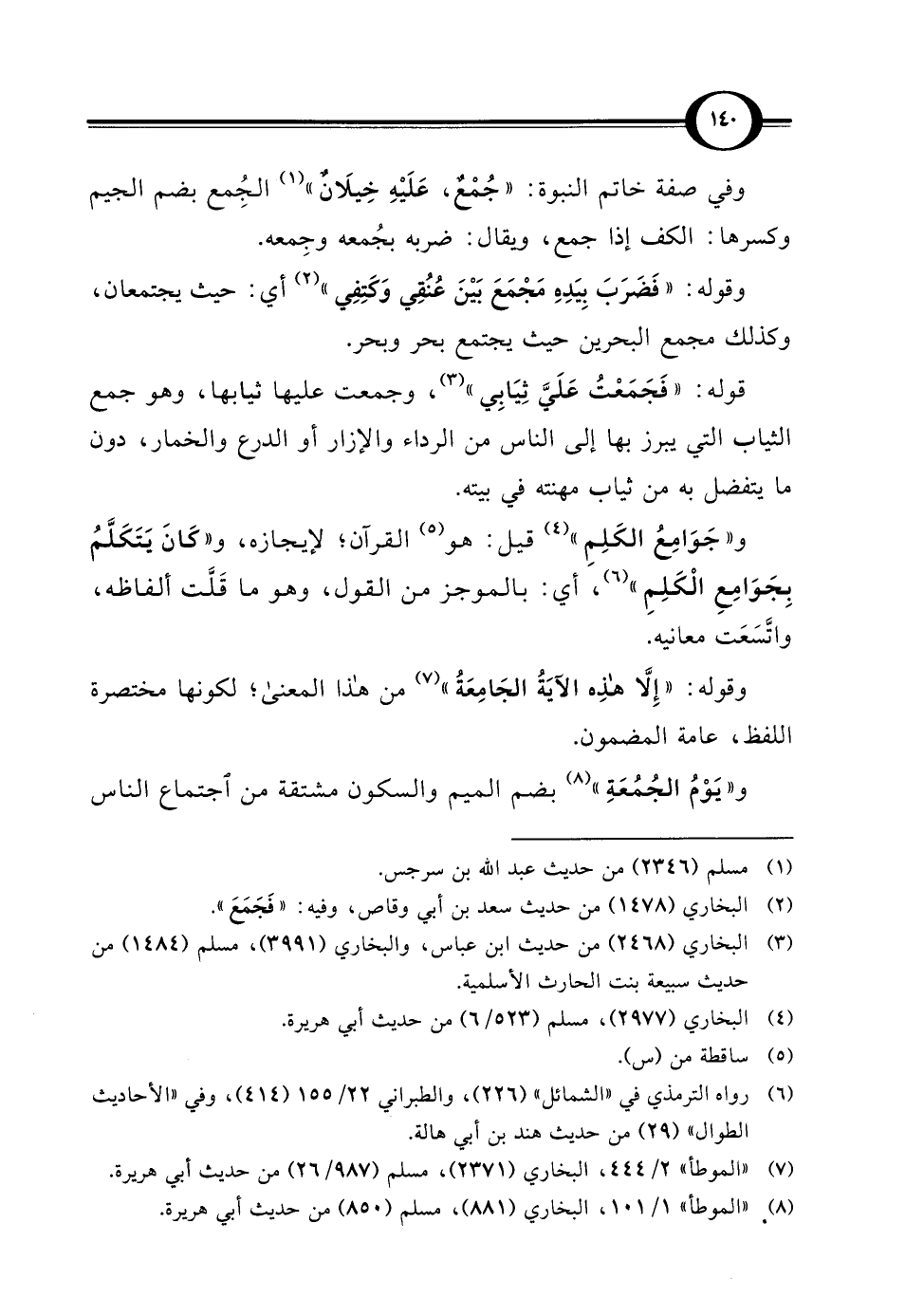و"جَوَامِعُ الكَلِمِ" (¬4) قيل: هو (¬5) القرآن؛ لإيجازه، و"كَانَ يَتَكَلَّمُ بِجَوَامِعِ الْكَلِمِ" (¬6)، أي: بالموجز من القول، وهو ما قَلَّت ألفاظه، واتَّسَعَت معانيه.