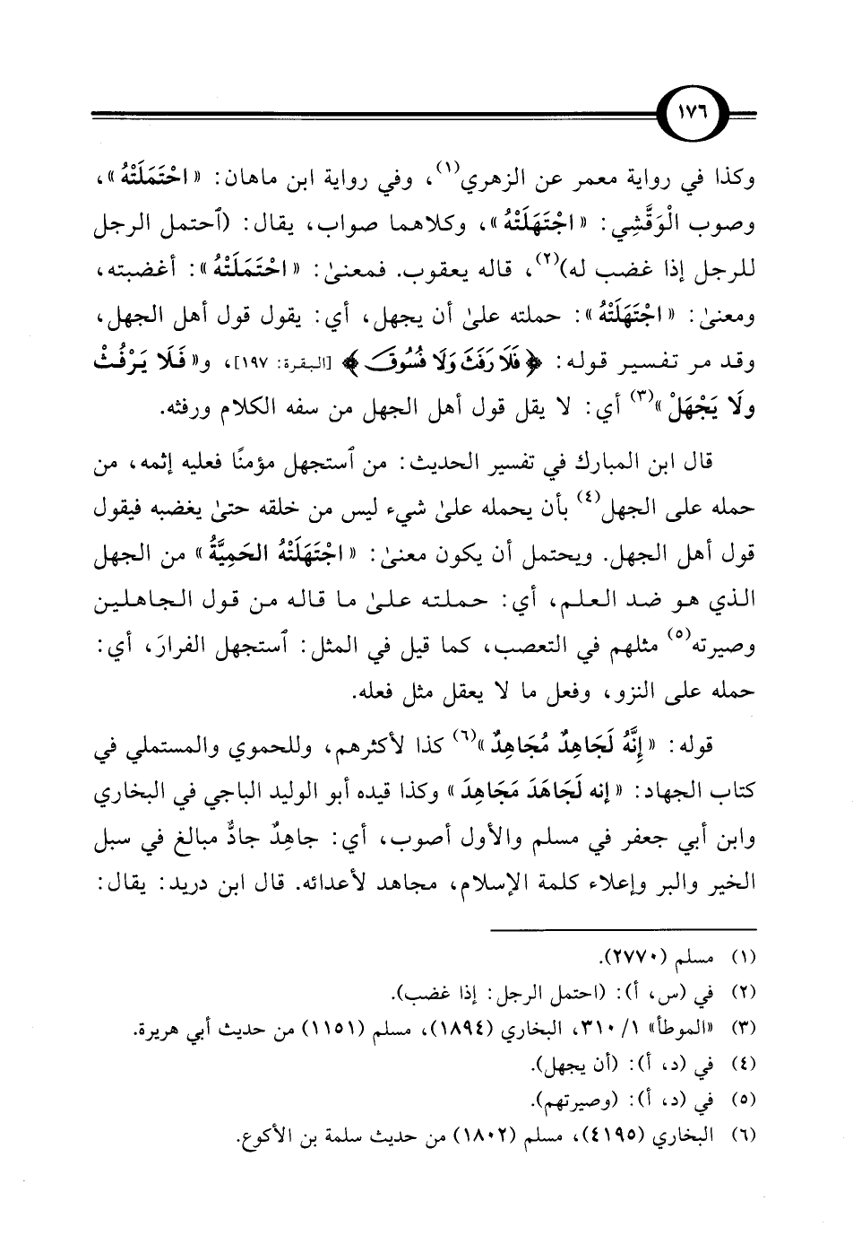 قال ابن المبارك في تفسير الحديث: من استجهل مؤمنًا فعليه إثمه، من حمله على الجهل (¬4) بأن يحمله على شيء ليس من خلقه حتى يغضبه فيقول قول أهل الجهل. ويحتمل أن يكون معنى: "اجْتَهَلَتْهُ الحَمِيَّةُ" من الجهل الذي هو ضد العلم، أي: حملته على ما قاله من قول الجاهلين وصيرته (¬5) مثلهم في التعصب، كما قيل في المثل: استجهل الفرارَ، أي: حمله على النزو، وفعل ما لا يعقل مثل فعله.