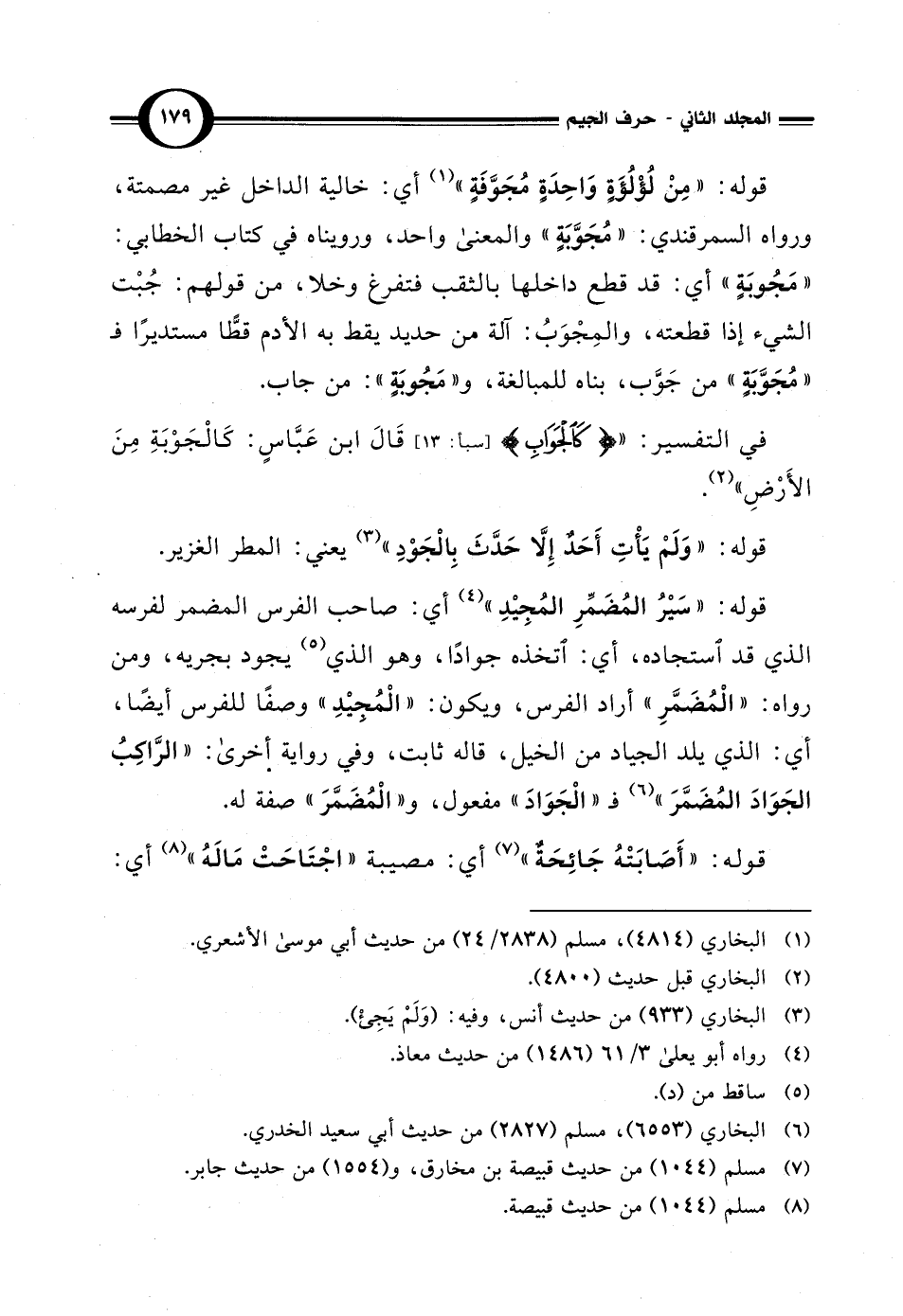 في التفسير: " {كَاَلْجوَابِ} [سبأ: 13] قَالَ ابن عَبَّاسٍ: كَالْجَوْبَةِ مِنَ الأَرْضِ" (¬2).