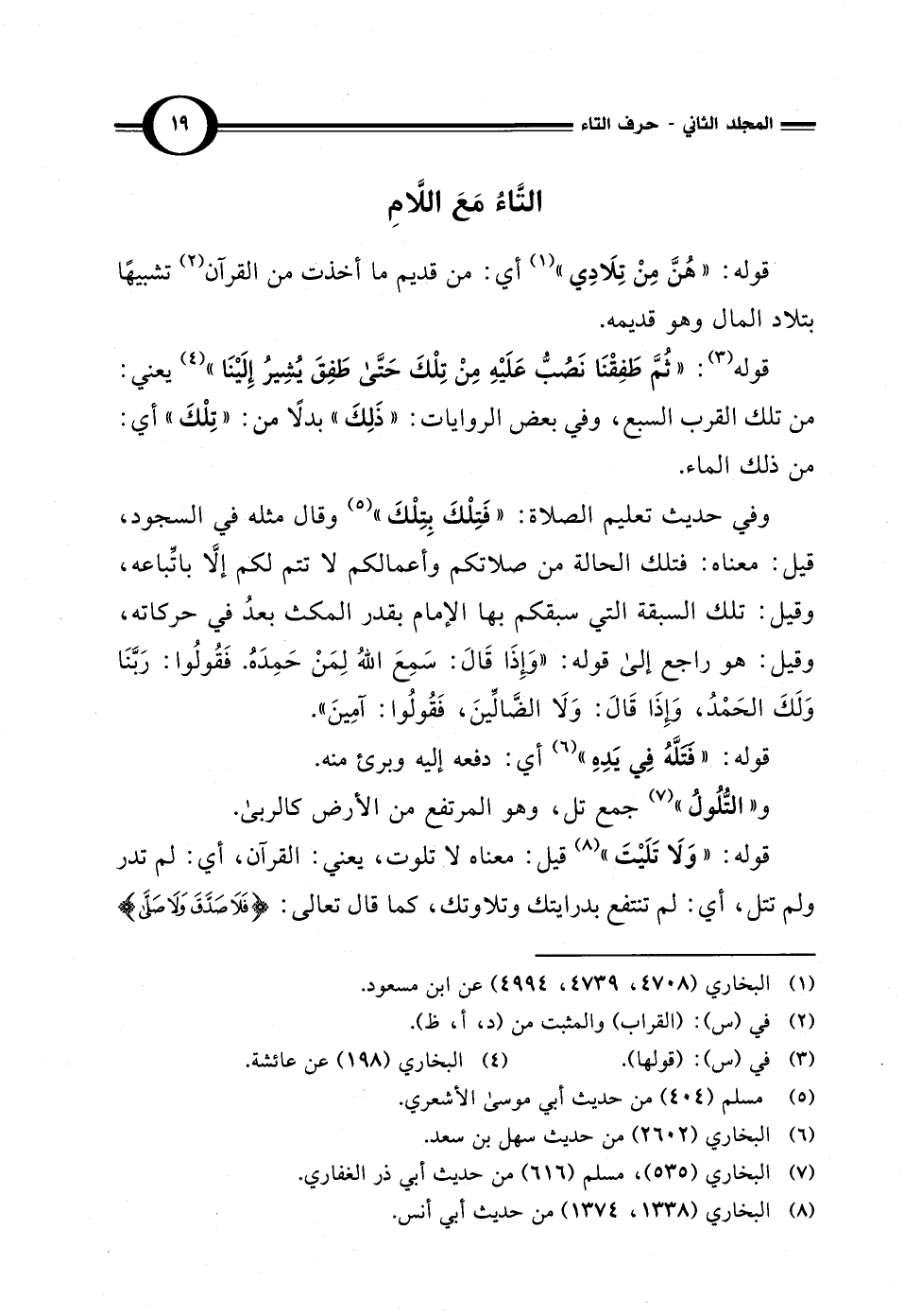 وفي حديث تعليم الصلاة: "فَتِلْكَ بِتِلْكَ" (¬5) وقال مثله في السجود، قيل: معناه: فتلك الحالة من صلاتكم وأعمالكم لا تتم لكم إلاَّ باتِّباعه، وقيل: تلك السبقة التي سبقكم بها الإِمام بقدر المكث بعدُ في حركاته، وقيل: هو راجع إلى قوله: "وَإِذَا قَالَ: سَمِعَ اللهُ لِمَنْ حَمِدَهُ. فَقُولُوا: رَبَّنَا وَلَكَ الحَمْدُ، وَإِذَا قَالَ: وَلَا الضَّالِّينَ، فَقُولُوا: آمِينَ".