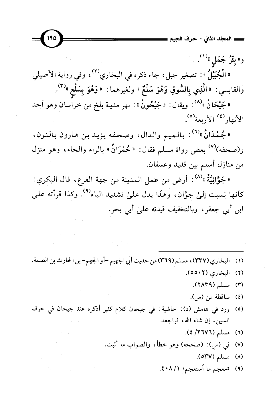(¬5) ورد في هامش (د): حاشية: في جيحان كلام كثير أذكره عند جيحان في حرف السين، إن شاء الله، فراجعه.