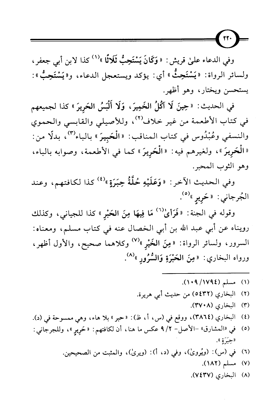 (¬5) في "المشارق" - الأصل - 2/ 9 عكس ما هنا، أن لكافتهم: "حَرِيرٍ"، وللجرجاني: "حِبَرَةٍ".