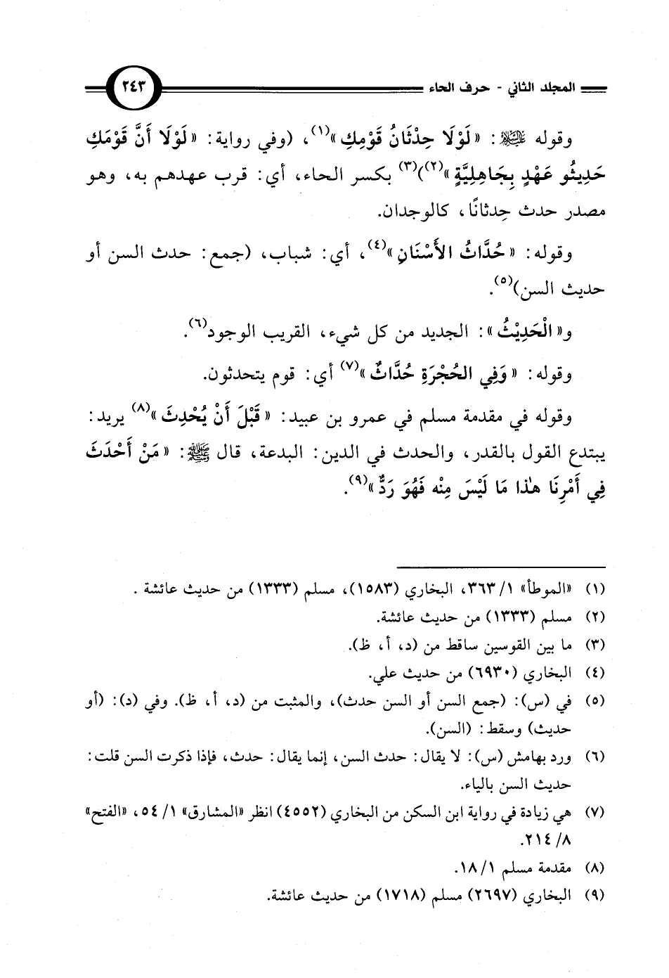 وقوله في مقدمة مسلم في عمرو بن عبيد: "قَبْلَ أَنْ يُحْدِثَ" (¬8) يريد: يبتدع القول بالقدر، والحدث في الدين: البدعة، قال - صلى الله عليه وسلم -: "مَنْ أَحْدَثَ في أَمْرِنَا هذا مَا لَيْسَ مِنْه فَهُوَ رَدٌّ" (¬9).