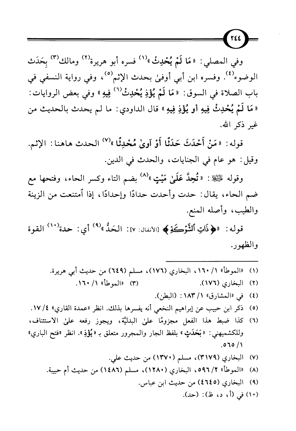 (¬6) كذا ضبط هذا الفعل مجزومًا على البدليَّة، ويجوز رفعه على الاستئناف، وللكشميهني: "بَحَدَثٍ" بلفظ الجار والمجرور متعلق بـ "يُؤْذِ". انظر "فتح الباري" 1/ 565.
