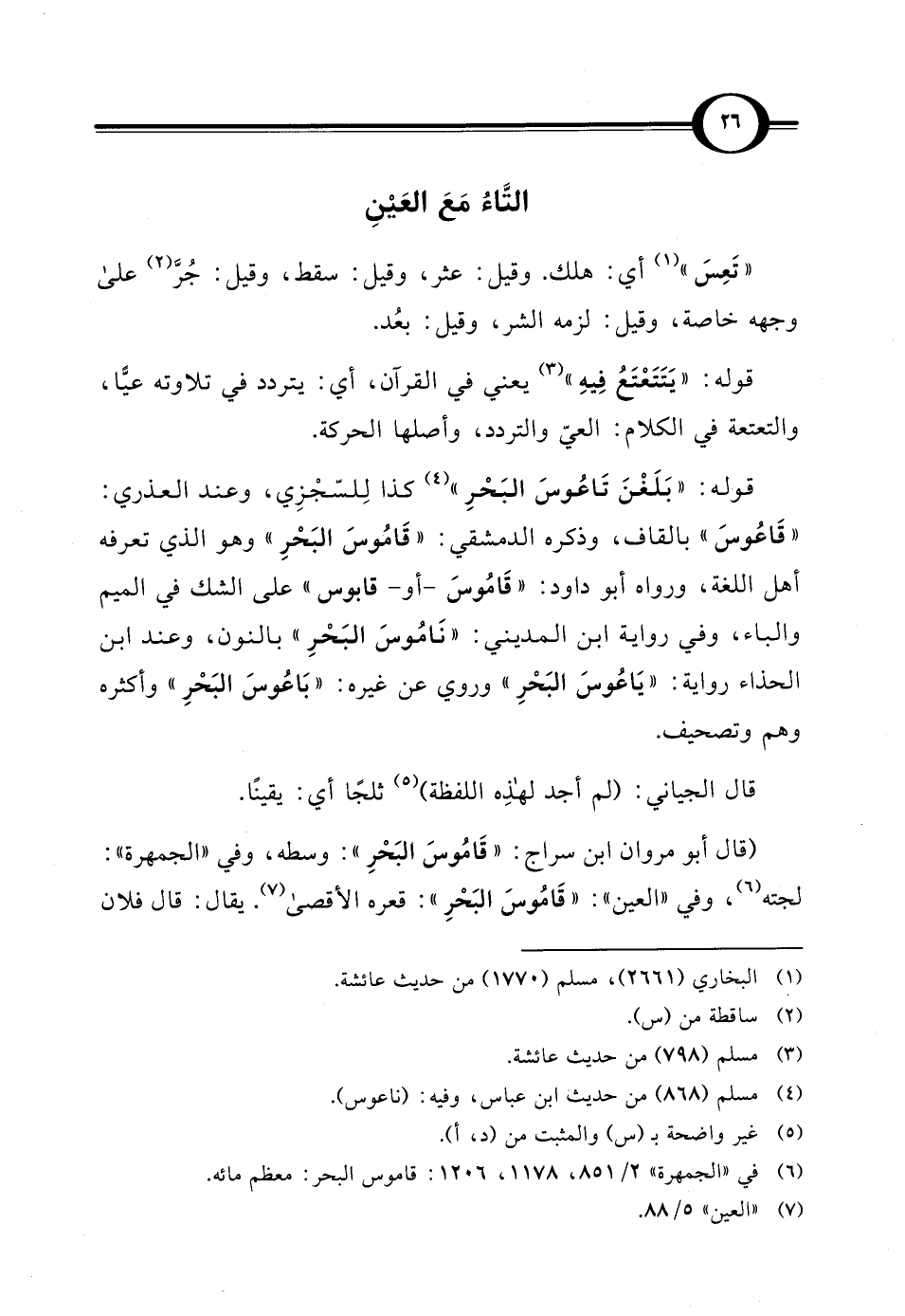 (¬6) في "الجمهرة" 2/ 851، 1178، 1206: قاموس البحر: معظم مائه.