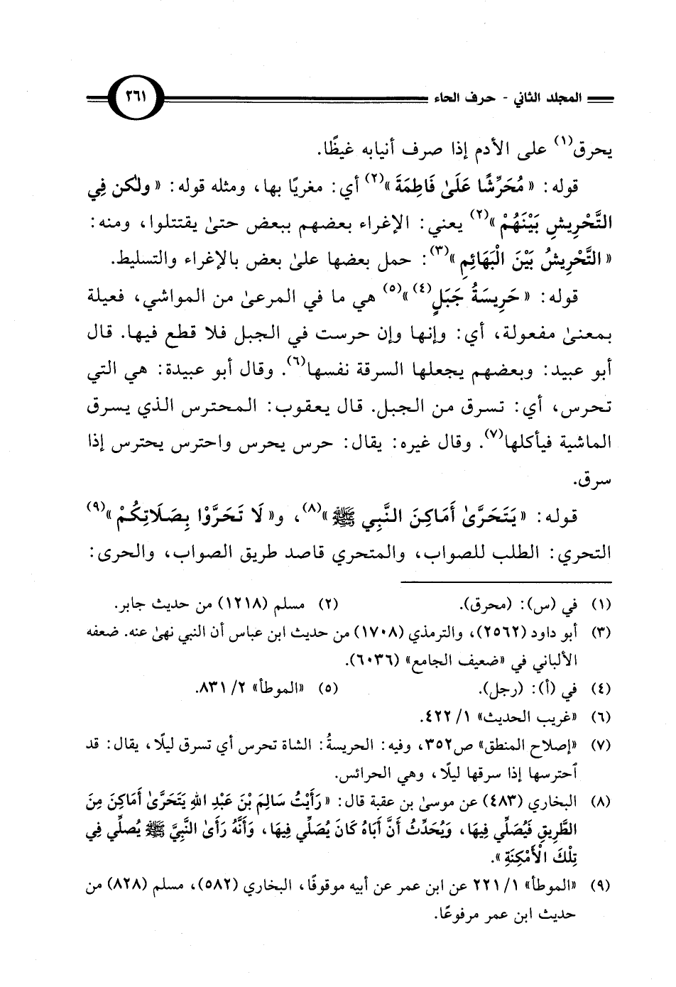 (¬7) "إصلاح المنطق" ص 352، وفيه: الحريسةُ: الشاة تحرس أي تسرق ليلاً، يقال: قد احترسها إذا سرقها ليلاً، وهي الحرائس.