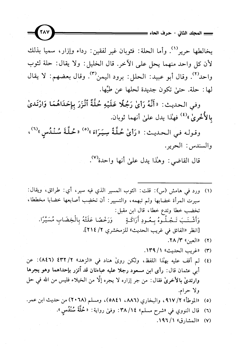 وفي الحديث: "أَنَّهُ رَأى رَجُلًا عَلَيْهِ حُلَّةٌ اتَّزَرَ بِإِحَدَاهُمَا وَارْتَدى بِالأُخْرى" (¬4) فهذا يدل على أنهما ثوبان.