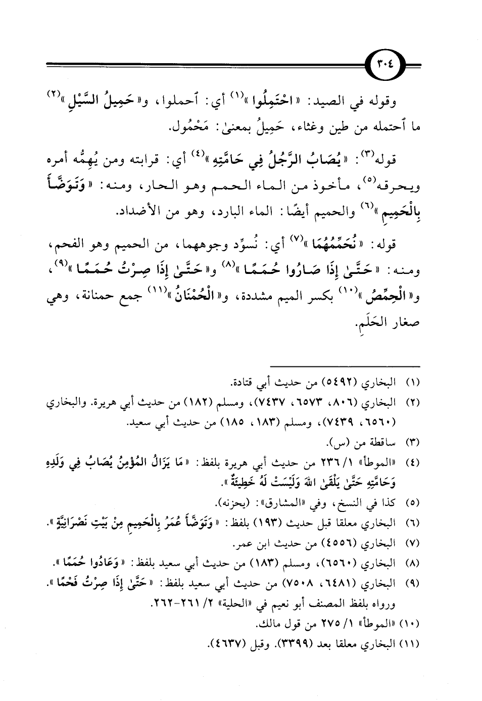 قوله (¬3): "يُصَابُ الرَّجُلُ في حَامَّتِهِ" (¬4) أي: قرابته ومن يُهِمُّه أمره ويحرقه (¬5)، مأخوذ من الماء الحمم وهو الحار، ومنه: " وَتَوَضَّأَ بِالْحَمِيمِ" (¬6) والحميم أيضًا: الماء البارد، وهو من الأضداد.