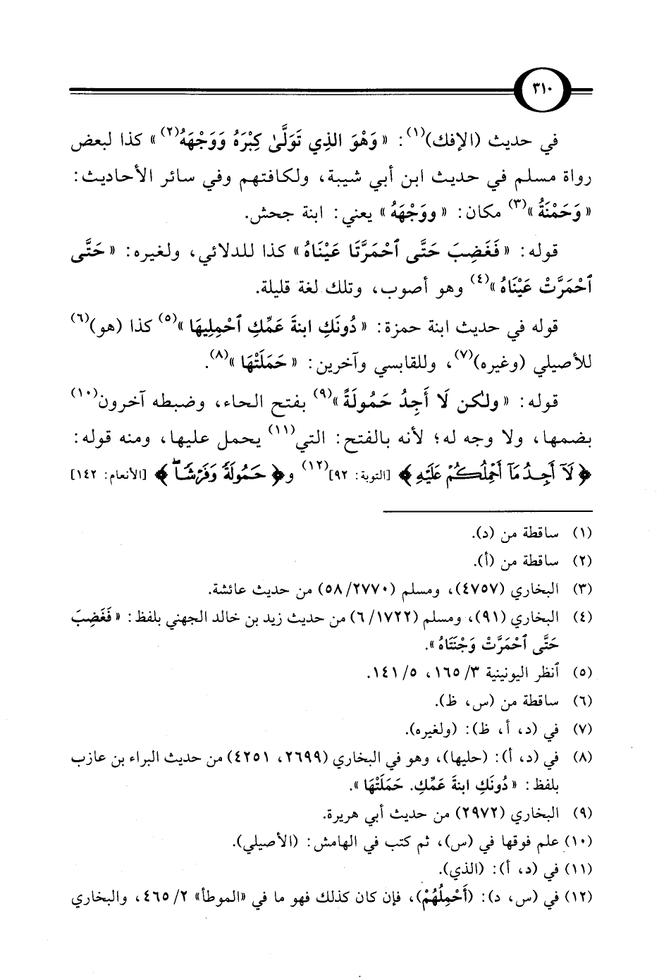 في حديث (الإفك) (¬1): "وَهْوَ الذِي تَوَلَّى كِبْرَهُ وَوَجْهَهُ (¬2) " كذا لبعض رواة مسلم في حديث ابن أبي شيبة، ولكافتهم وفي سائر الأحاديث: "وَحَمْنَةُ" (¬3) مكان: "ووَجْهَهُ" يعني: ابنة جحش.