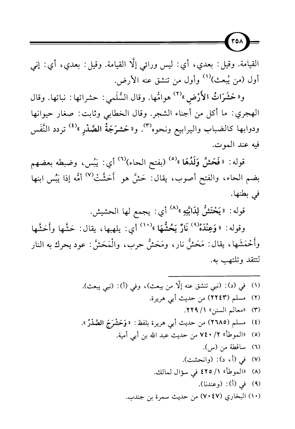 ودوابها كالضباب واليرابيع ونحوه (¬3). و"حَشرَجَةُ الصَّدْرِ" (¬4) تردد النَّفَس