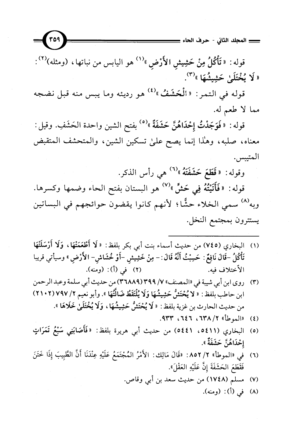 قوله في التمر: "الْحَشَفُ" (¬4) هو رديئه وما يبس منه قبل نضجه مما لاطعم له.