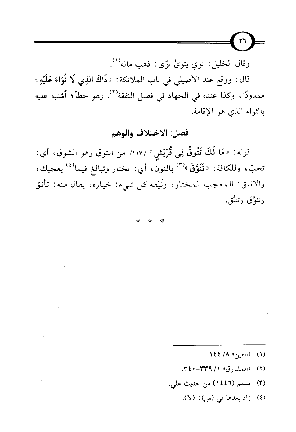 وقال الخليل: توي يتوى توًى: ذهب ماله (¬1).