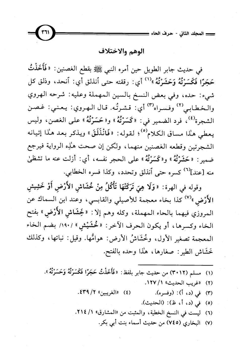 (¬1) مسلم (3012) من حديث جابر بلفظ: "فَأخَذْتُ حَجَرًا فَكَسَرْتُهُ وَحَسَرْتُهُ".