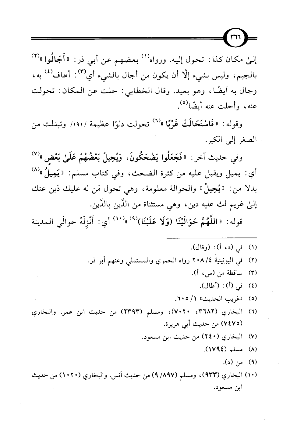 وفي حديث آخر: "فَجَعَلُوا يَضْحَكُونَ، وَيُحِيلُ بَعْضُهُمْ عَلَى بَعْضٍ" (¬7) أي: يميل ويقبل عليه من كثرة الضحك، وفي كتاب مسلم: "يَمِيلُ" (¬8) بدلاً من: "يُحِيلُ" والحوالة معلومة، وهي تحول مَن له عليك دَين عنك إلى غريم لك عليه دين، وهي مستثناة من الدَّين بالدَّين.
