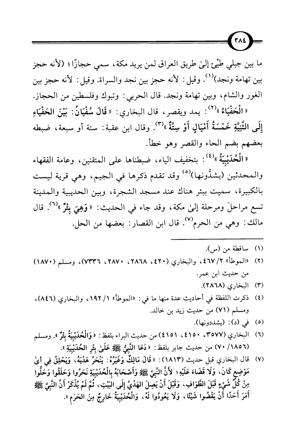(¬6) البخاري (3577، 4150، 4151) من حديث البراء بلفظ: "وَالْحُدَيْبِيَةُ بِئْرٌ". ومسلم (1856/ 70) من حديث جابر بلفظ: "دَعَا النَّبِيُّ - صلى الله عليه وسلم - عَلَى بِئْرِ الحُدَيْبِيَةِ".