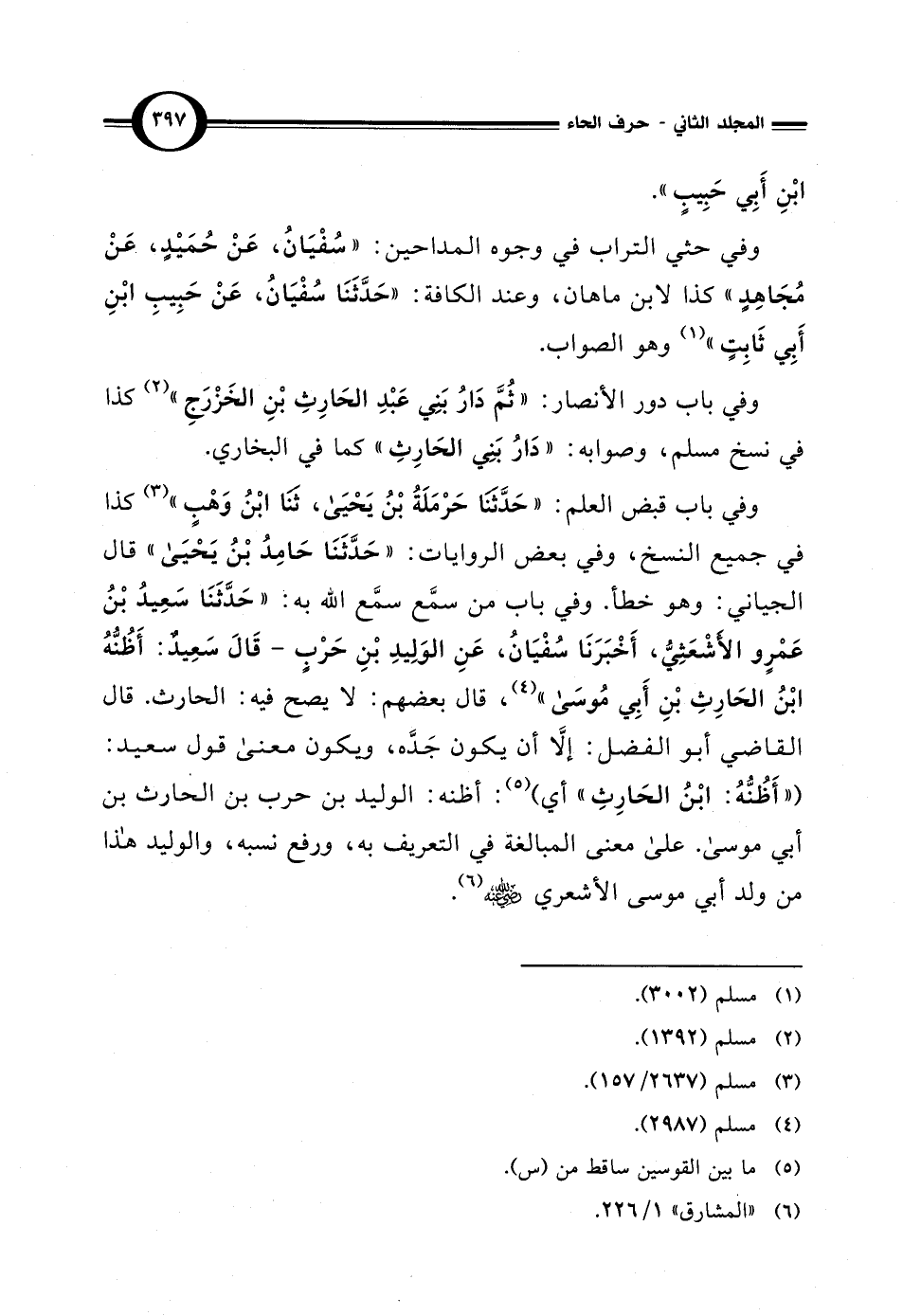 وفي باب دور الأنصار: "ثُمَّ دَارُ بَنِي عَبْدِ الحَارِثِ بْنِ الخَزْرَجِ" (¬2) كذا في نسخ مسلم، وصوابه: "دَارُ بَنِي الحَارِثِ" كما في البخاري.