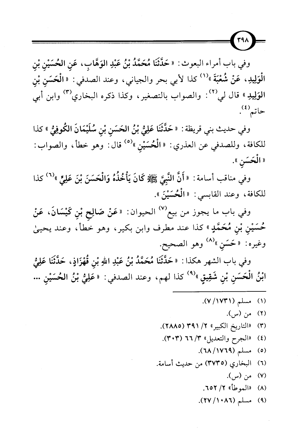 وفي باب ما يجوز من بيع (¬7) الحيوان: "عَنْ صَالِحِ بْنِ كَيْسَانَ، عَنْ حُسَيْنِ بْنِ مُحَمَّدٍ" كذا عند مطرف وابن بكير، وهو خطأ، وعند يحيى وغيره: "حَسَنِ" (¬8) وهو الصحيح.