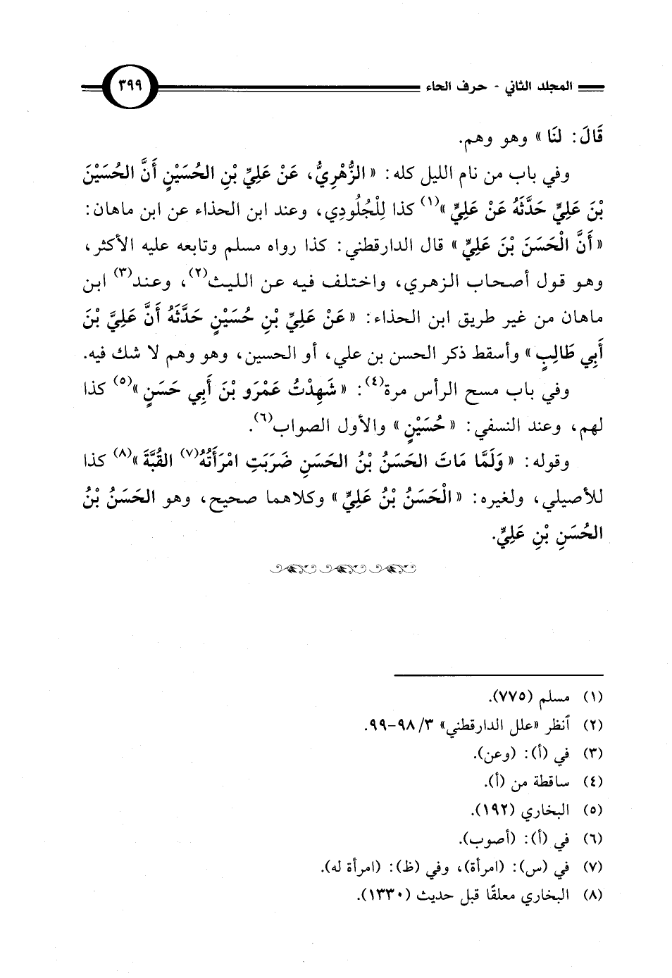 وفي باب من نام الليل كله: "الزُّهْرِيُّ، عَنْ عَلِيِّ بْنِ الحُسَيْنٍ أَنَّ الحُسَيْنَ بْنَ عَلِيِّ حَدَّثَهُ عَنْ عَلِيِّ" (¬1) كذا لِلْجُلُودِي، وعند ابن الحذاء عن ابن ماهان: "أَنَّ الْحَسَنَ بْنَ عَلِيٍّ" قال الدارقطني: كذا رواه مسلم وتابعه عليه الأكثر، وهو قول أصحاب الزهري، واختلف فيه عن الليث (¬2)، وعند (¬3) ابن ماهان من غير طريق ابن الحذاء: "عَنْ عَلِيِّ بْنِ حُسَيْنٍ حَدَّثَهُ أَنَّ عَلِيَّ بْنَ أَبِي طَالِبٍ" وأسقط ذكر الحسن بن علي، أو الحسين، وهو وهم لا شك فيه.